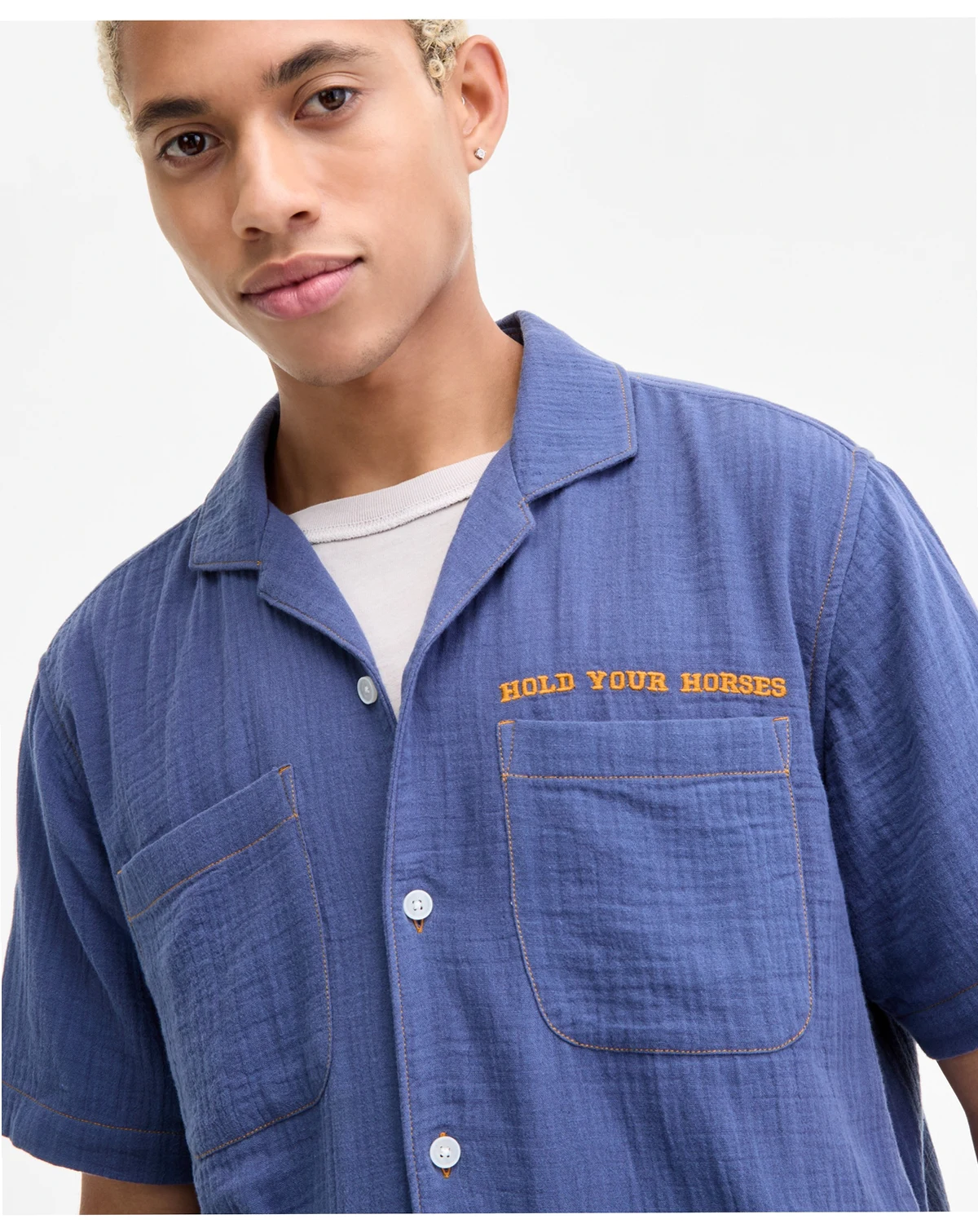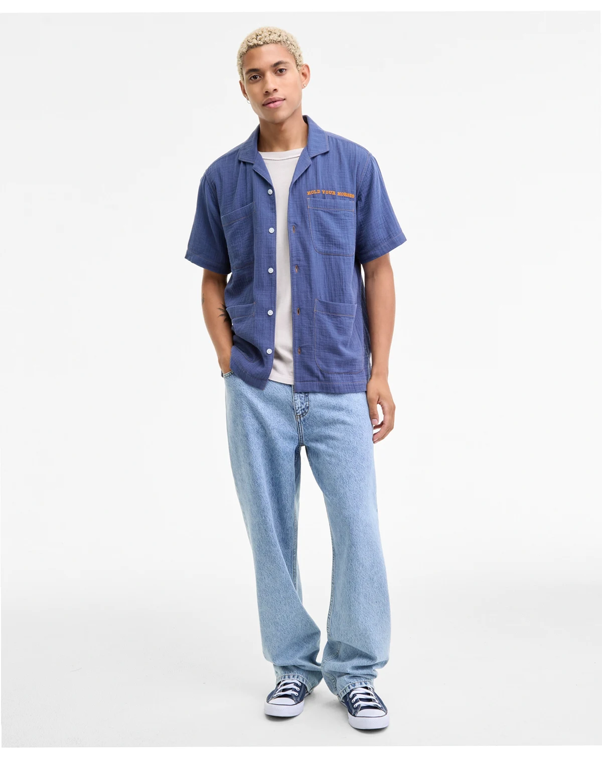 Featuring plenty of pockets for all of your essentials, this Sun + Stone camp shirt is constructed in 100% cotton for all-day comfort.
