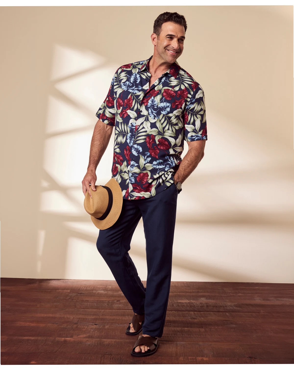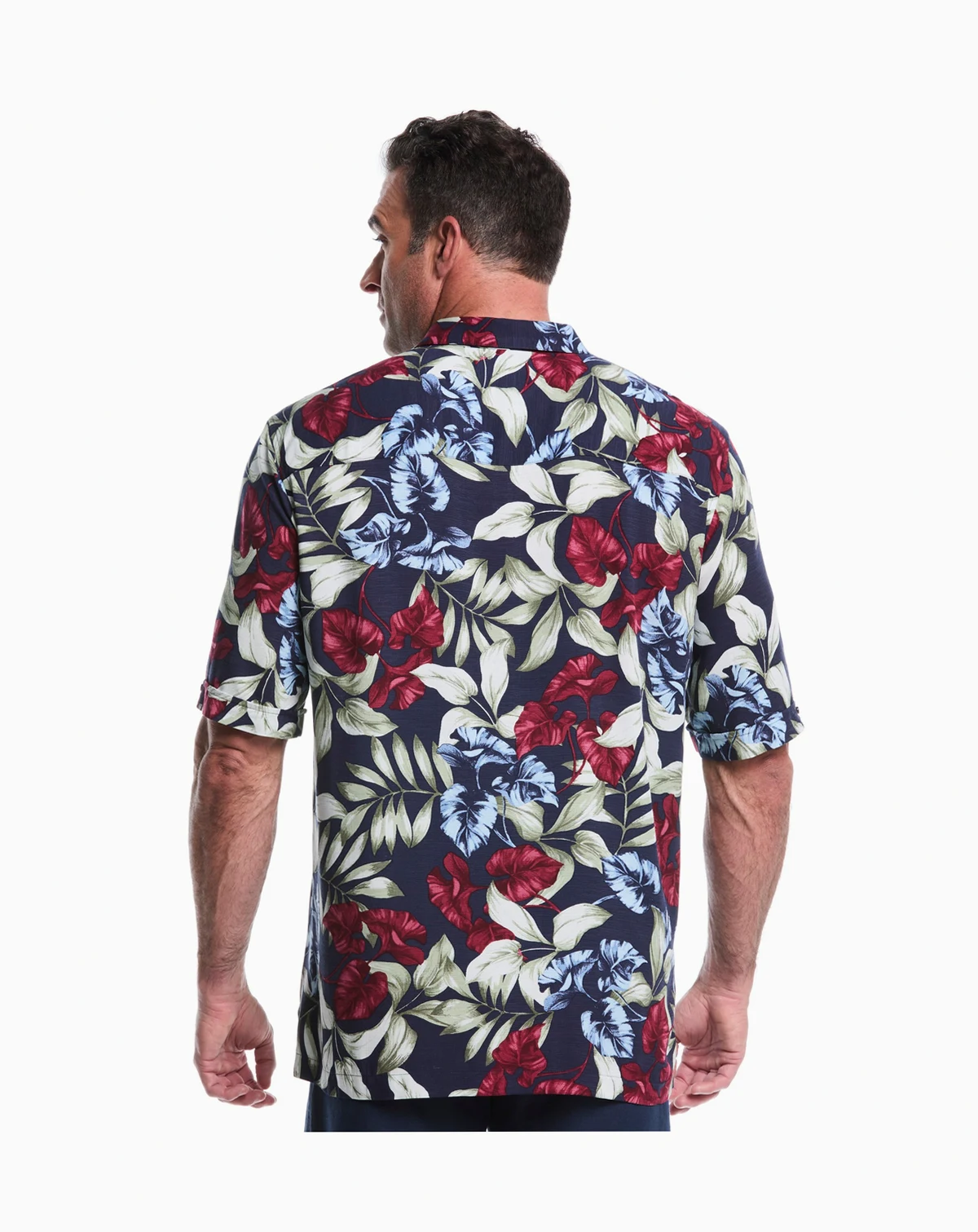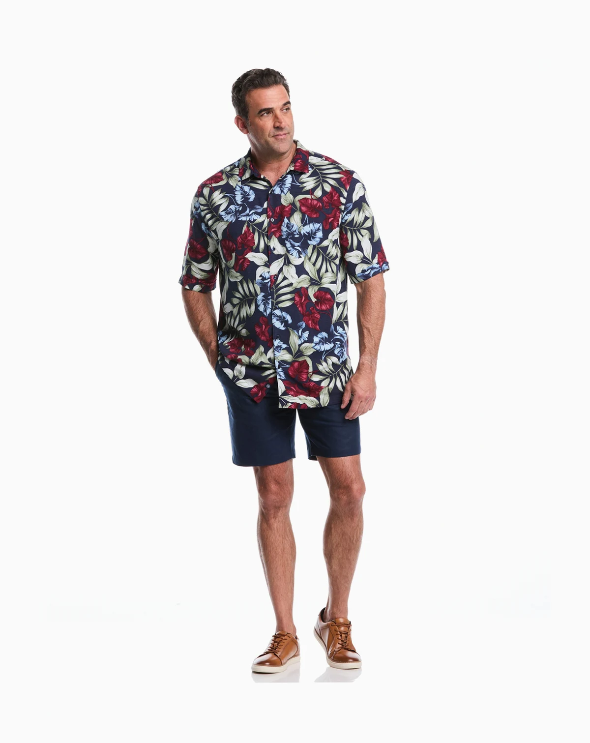 Give your everyday looks a bold style boost with this Cubavera short-sleeve button-up shirt, featuring a tropical-inspired pattern that adds energy to casual outfits. A classic-fit with a point collar ensures comfort for day or night wear.
