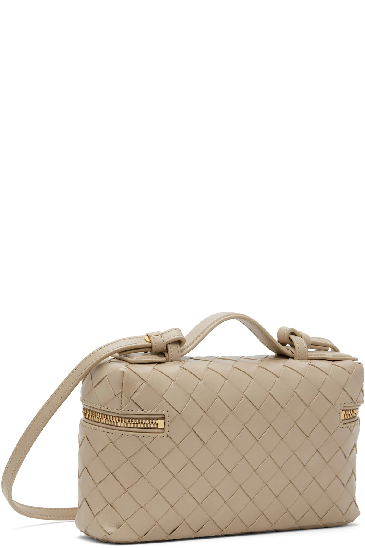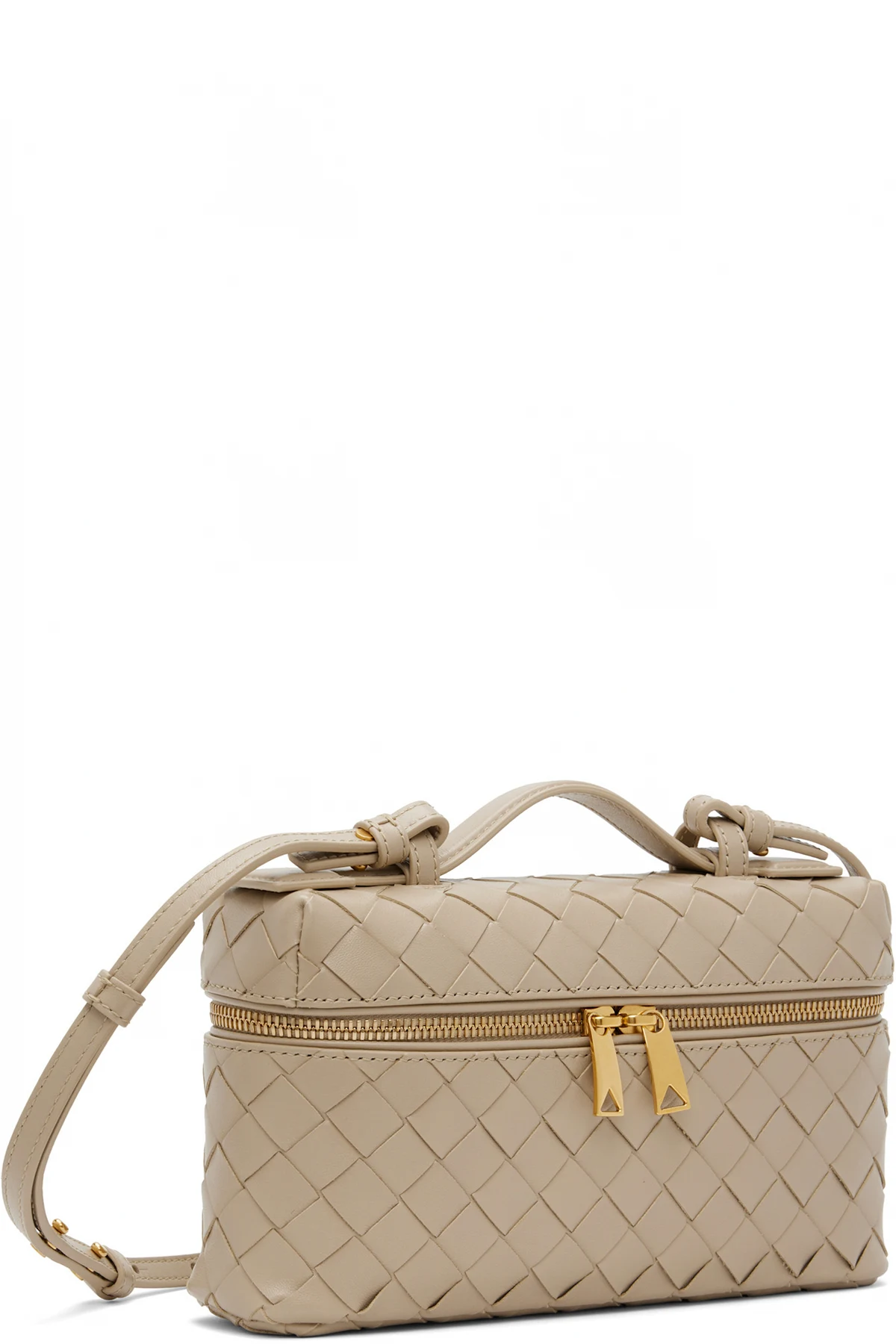 Intrecciato-woven grained calfskin top handle bag.
