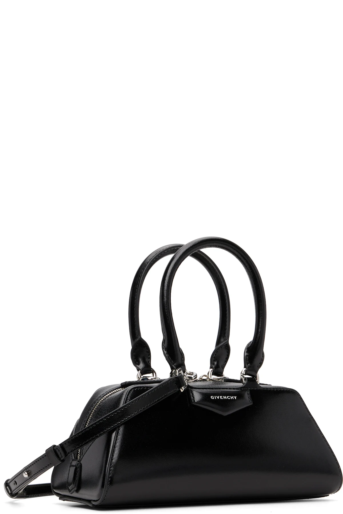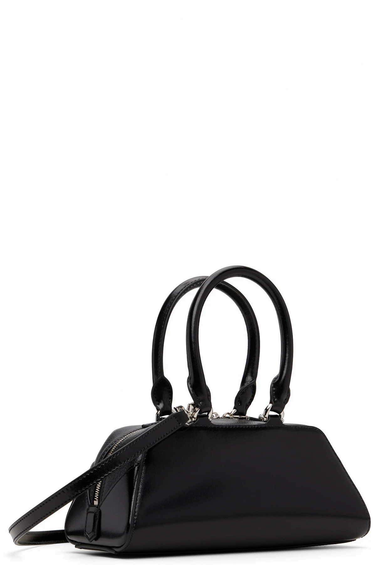 Polished box calfskin and pebble-grained buffalo leather top handle bag.