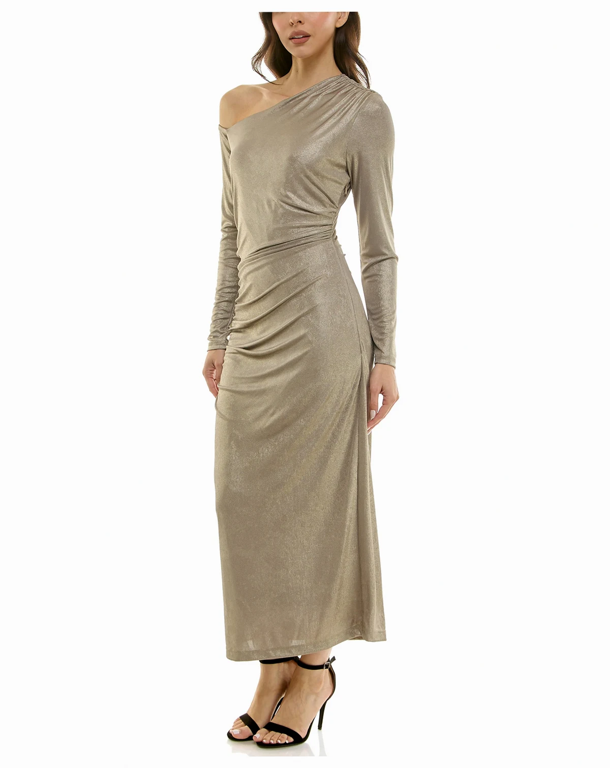 Flatter your figure in this long sleeve dress from Taylor, designed with an elegant off-shoulder neckline. The fit and flare silhouette creates a timeless and feminine look for any special occasion.