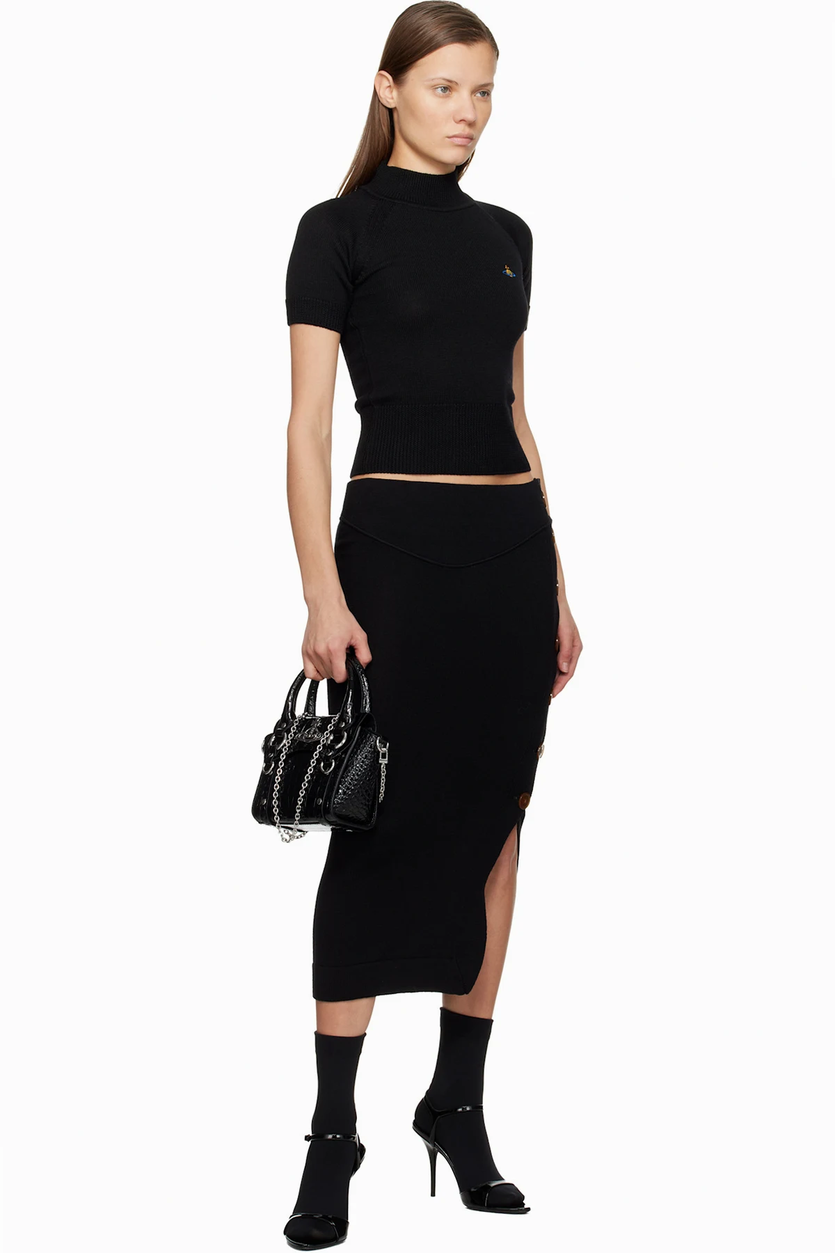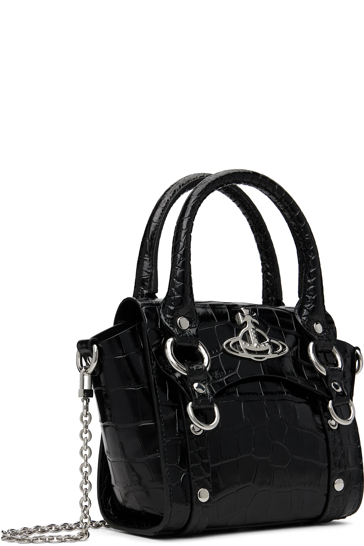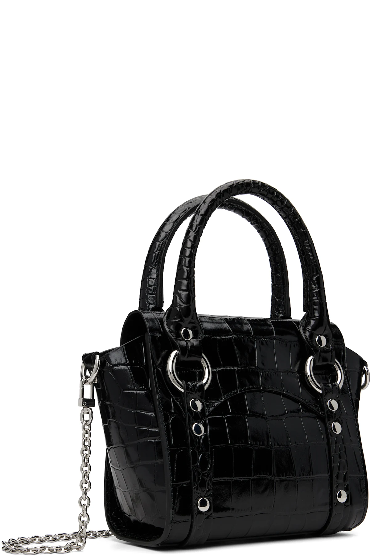 Croc-embossed calfskin top handle bag.