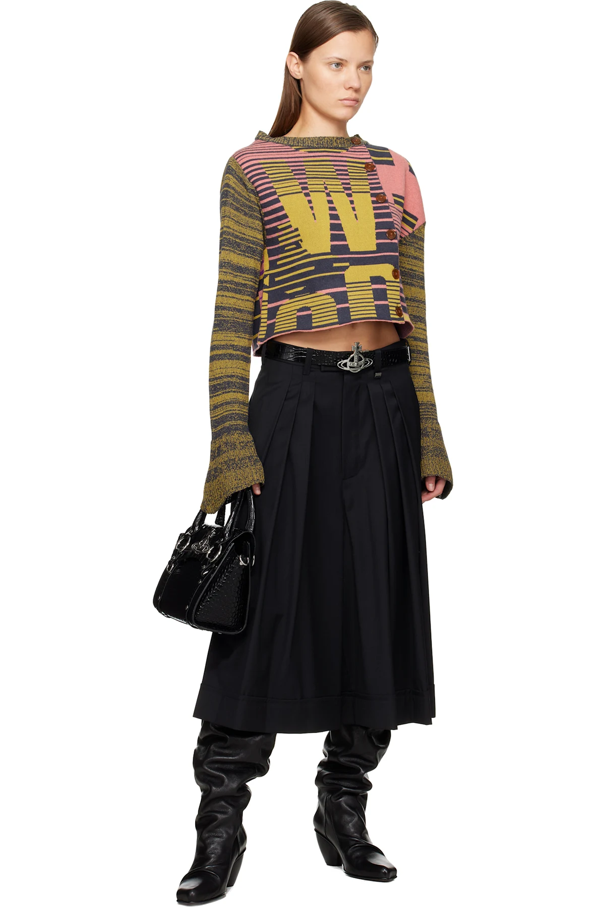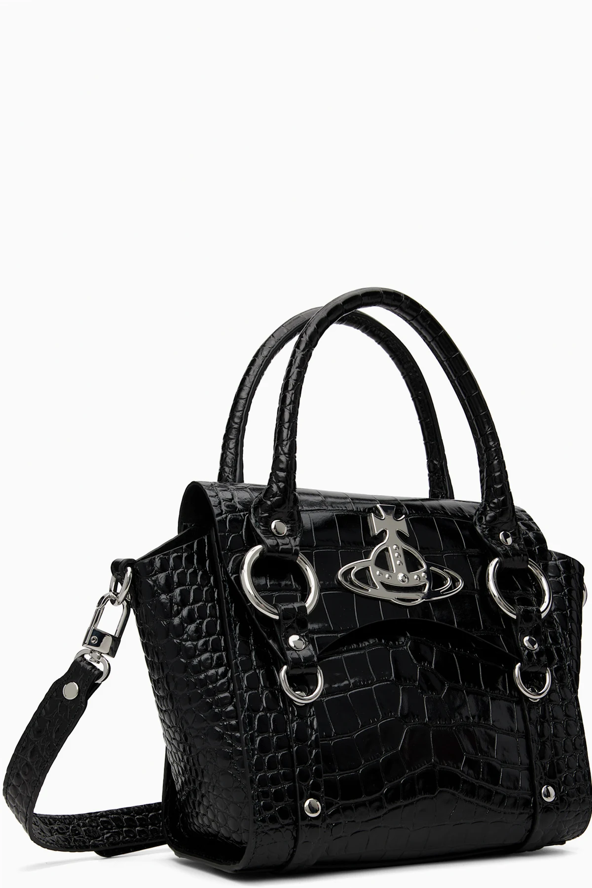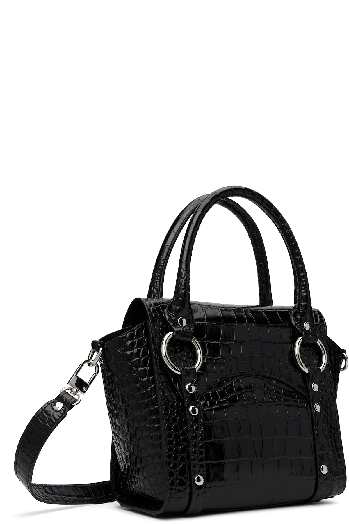 Croc-embossed calfskin top handle bag.