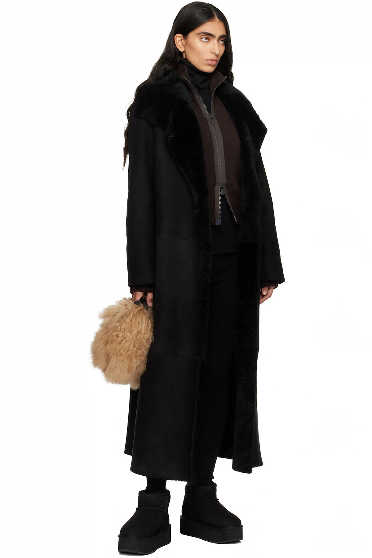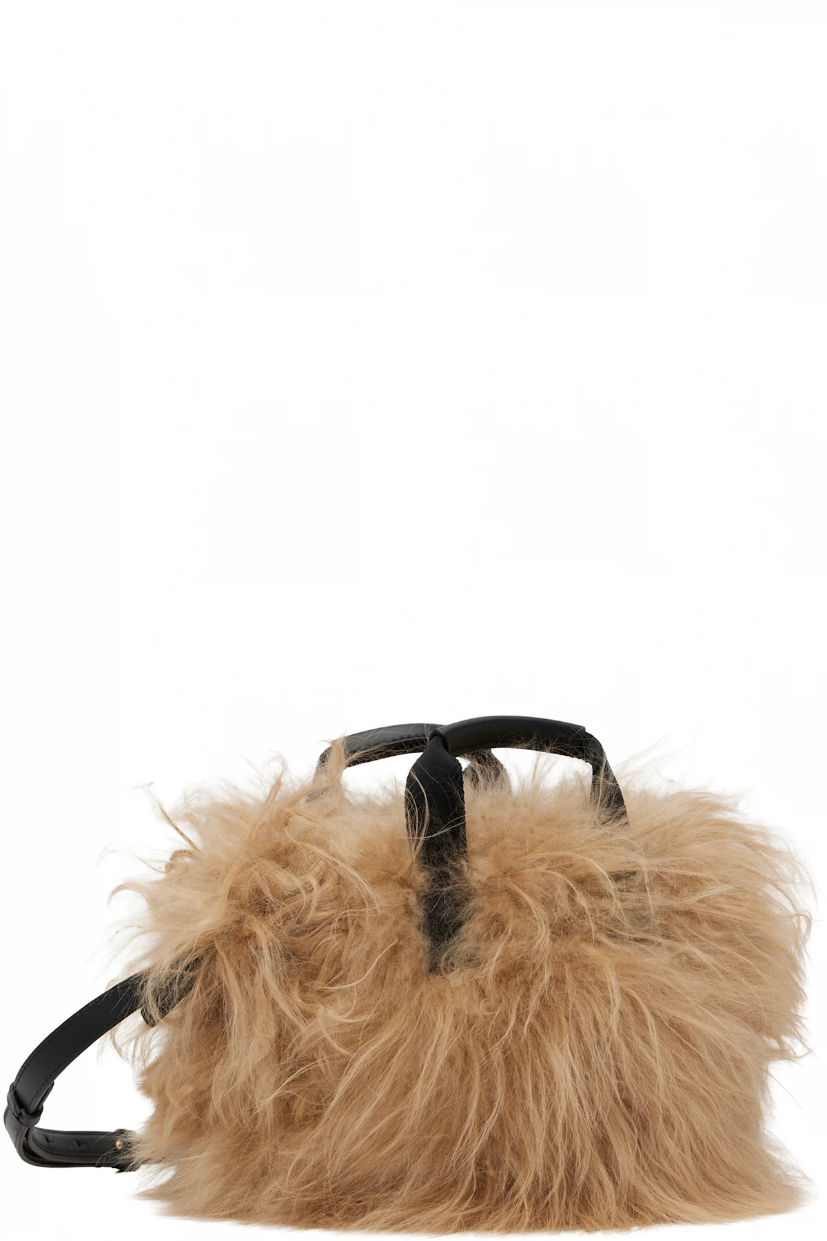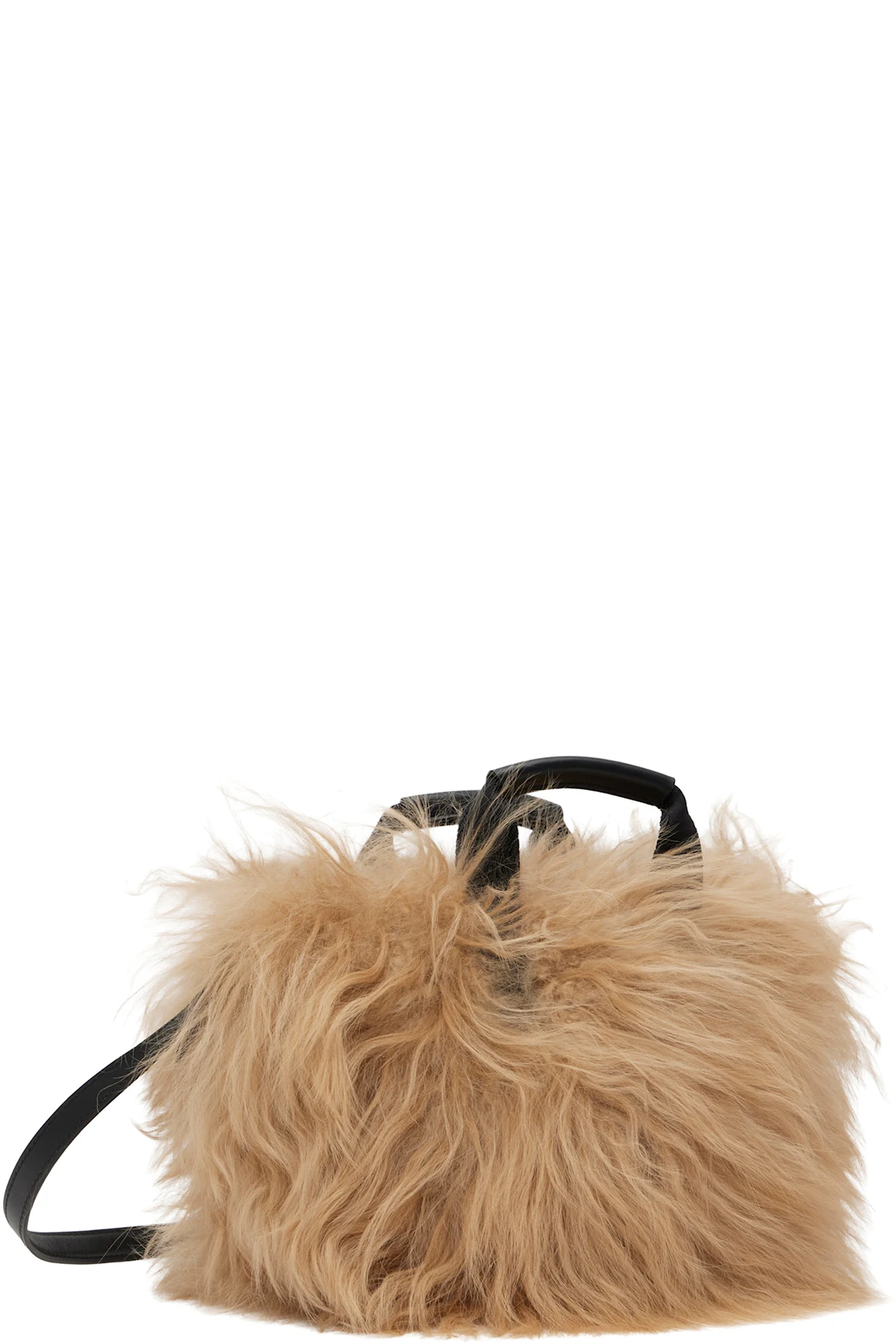 Shearling top handle bag.
