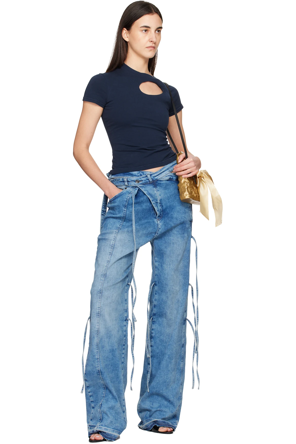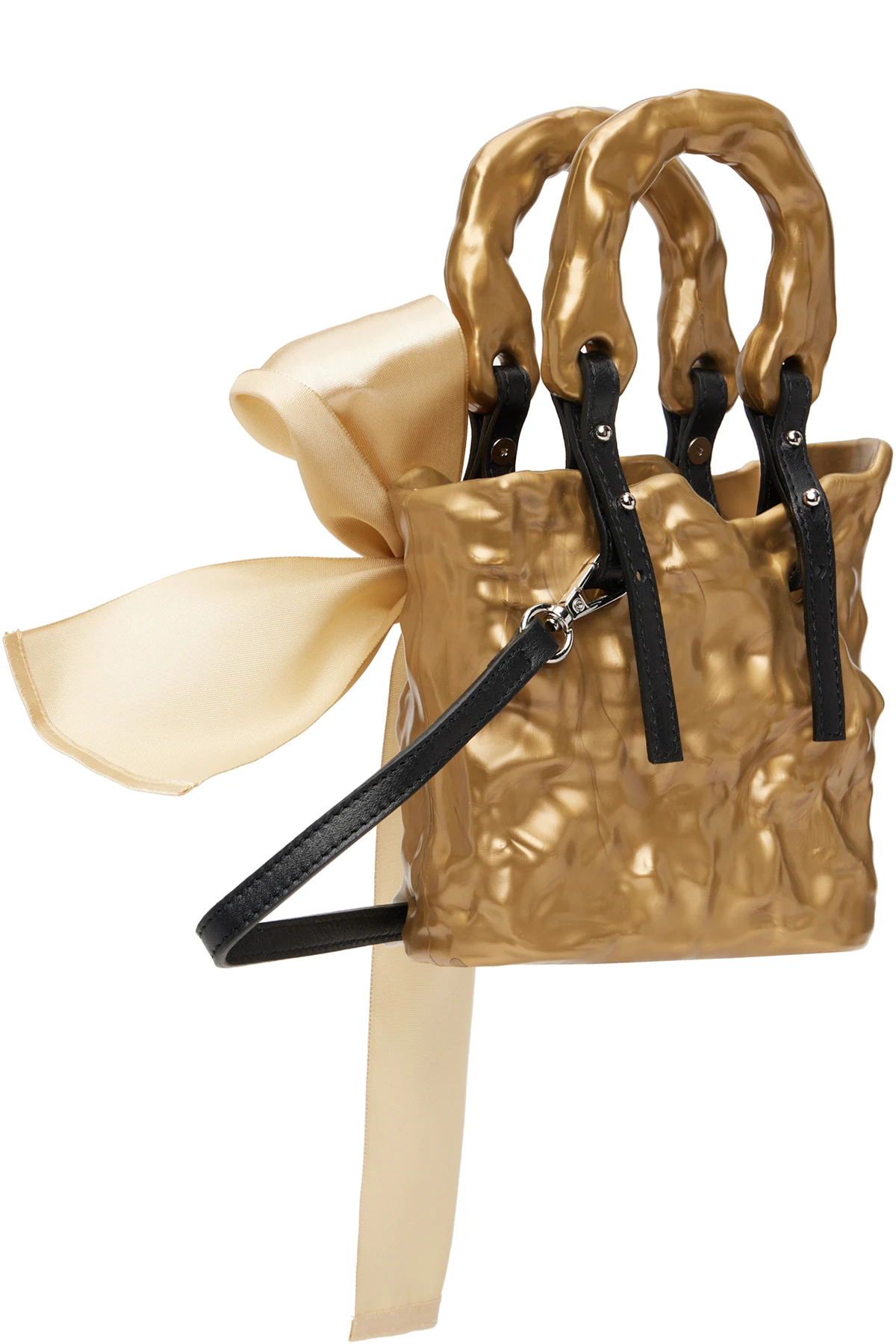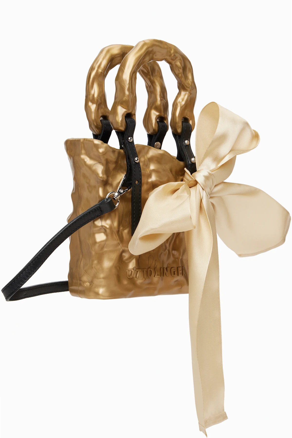 · Self-tie bow accent at handle