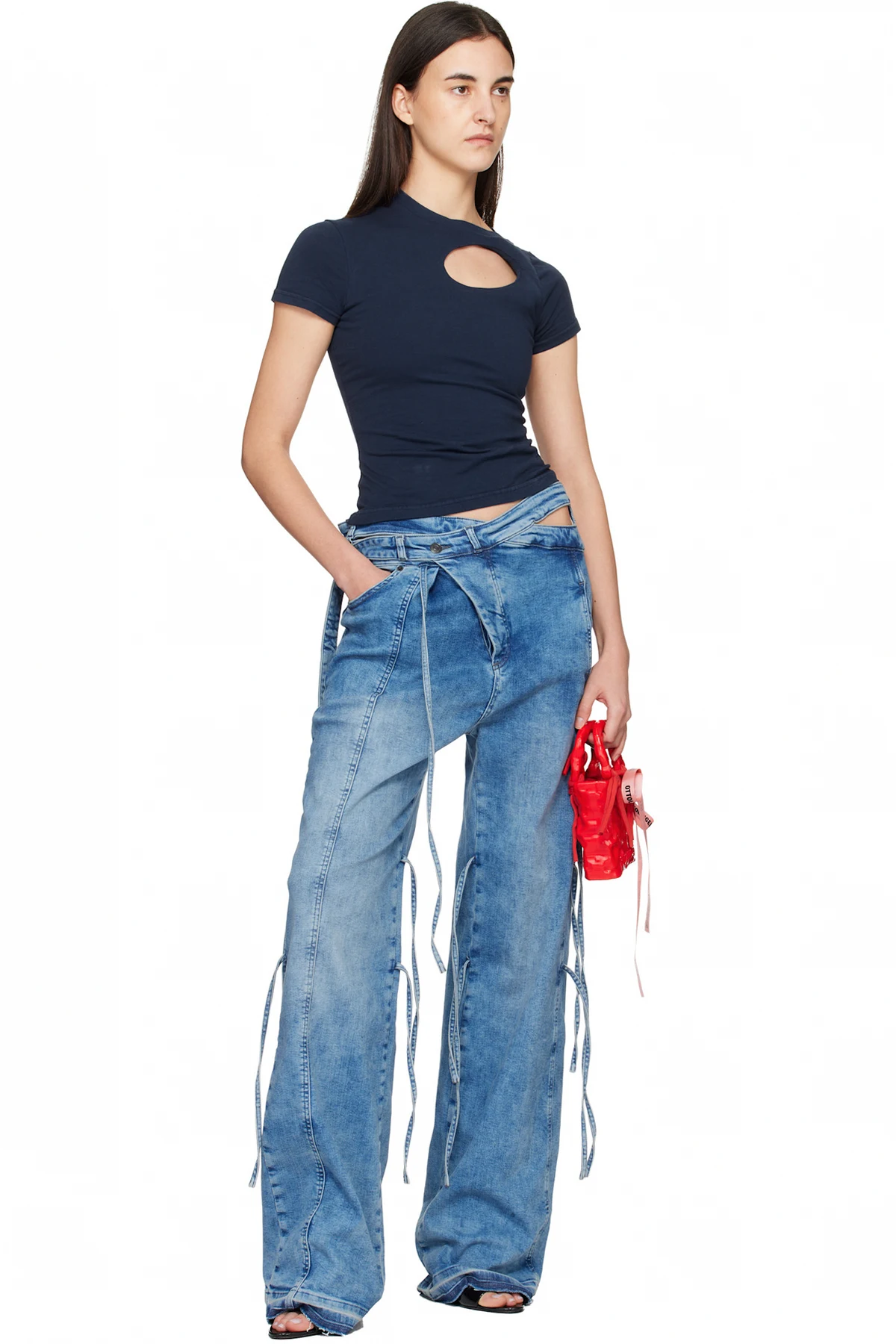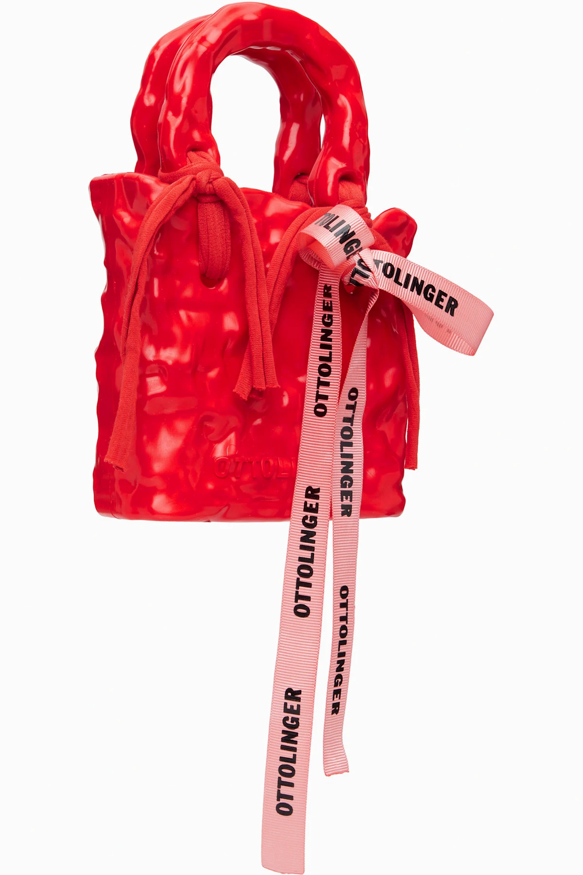 · Logo-bonded self-tie bow accent at handle