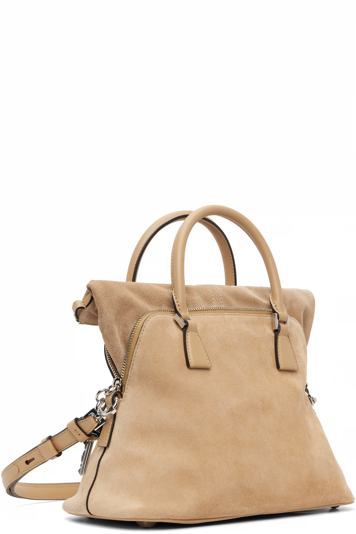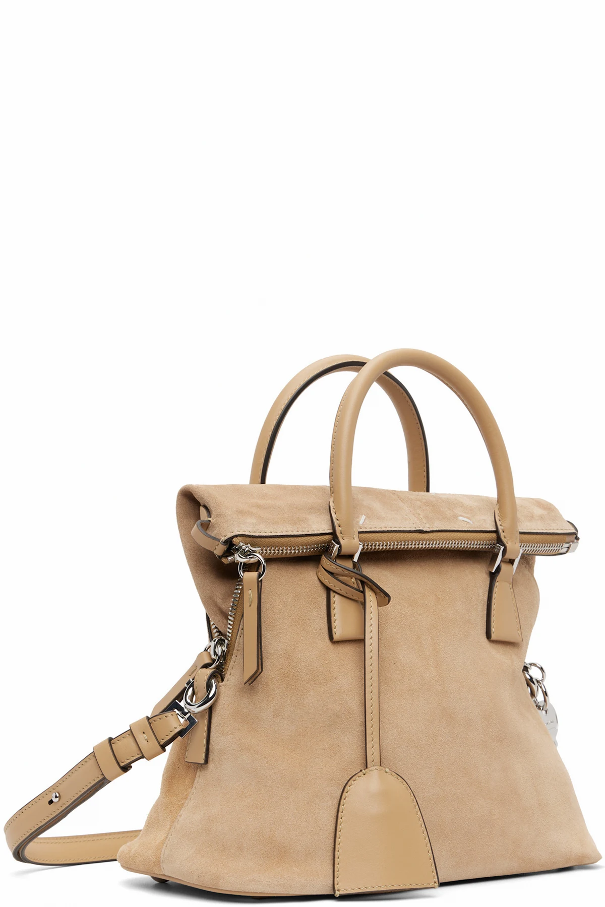 Calfskin suede top handle bag.