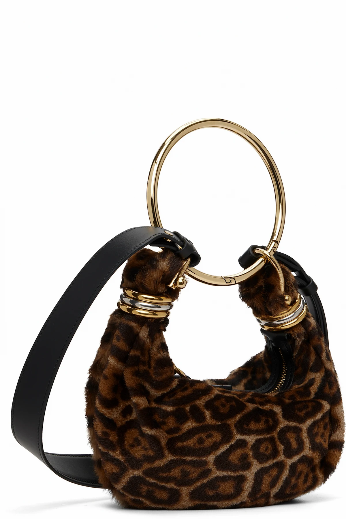 Shearling top handle bag.