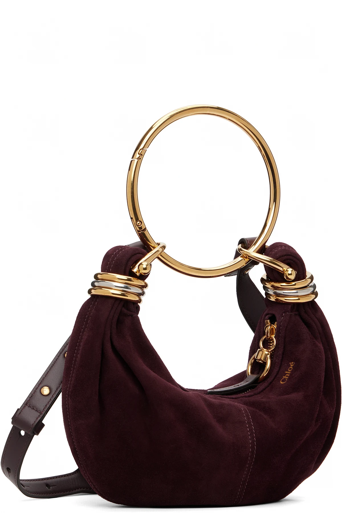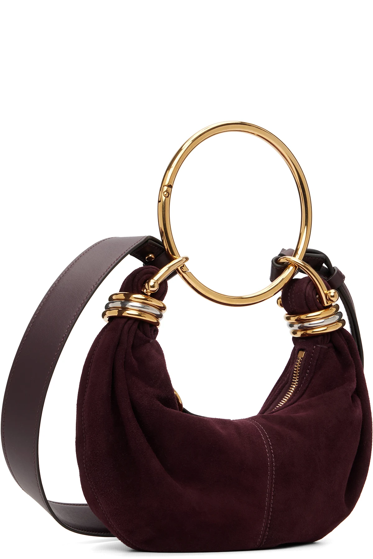 Goatskin suede top handle bag.