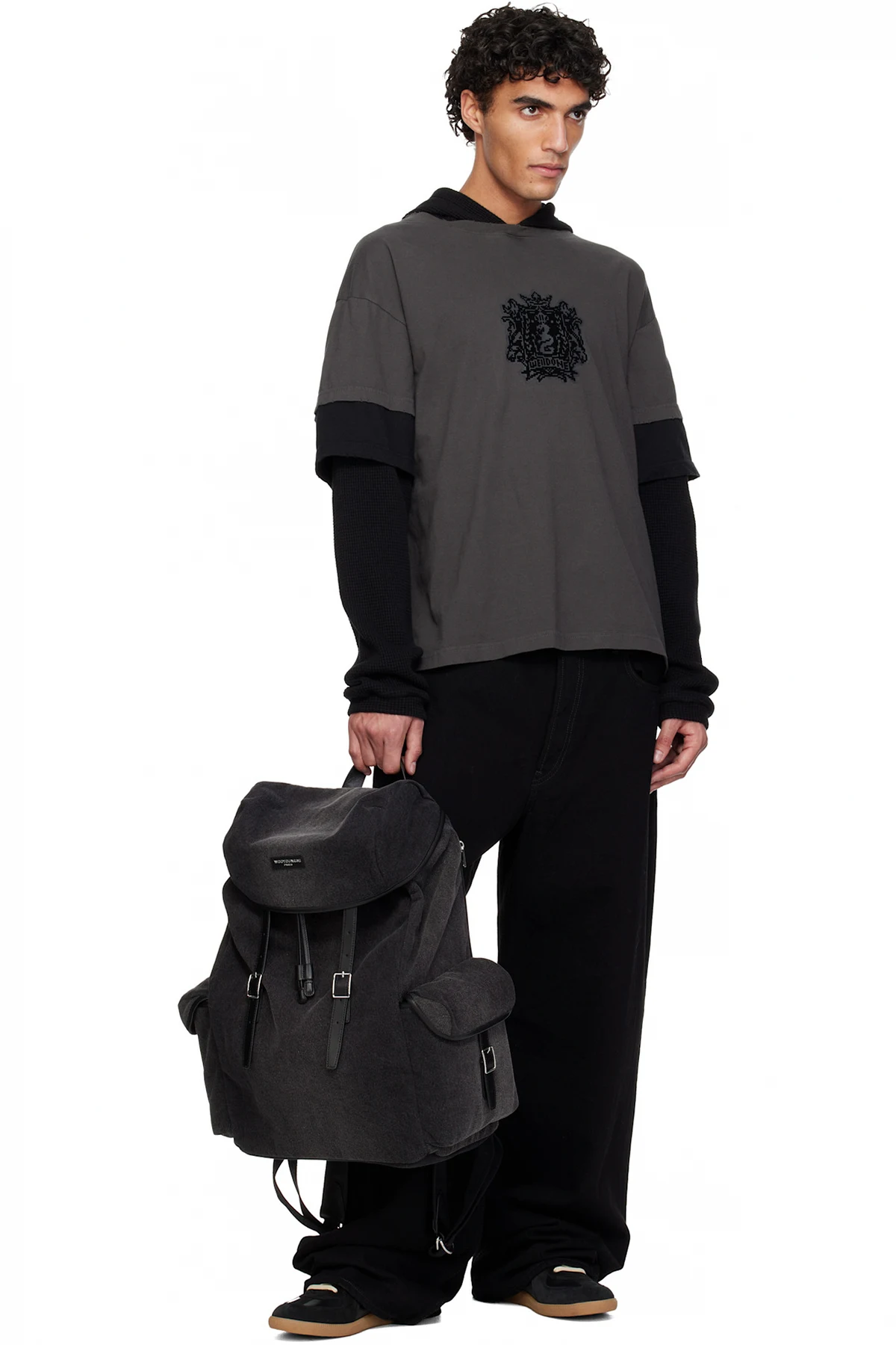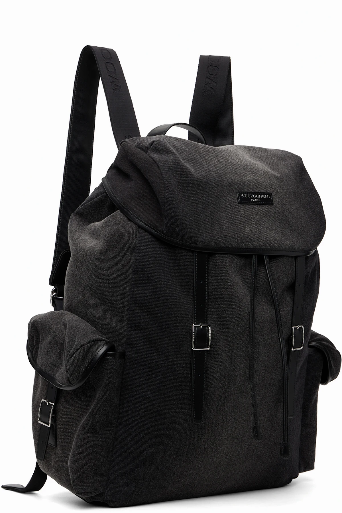 Denim backpack.