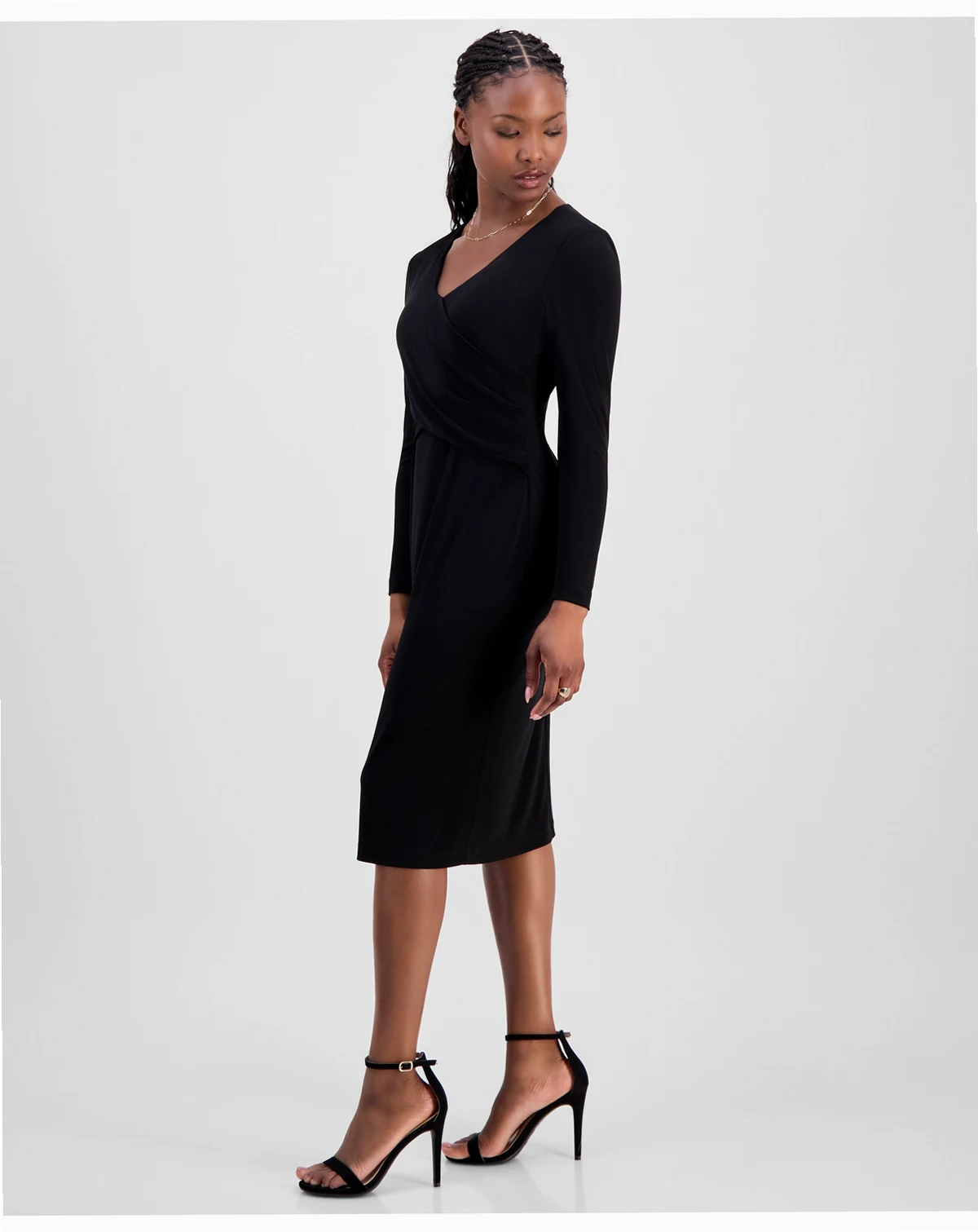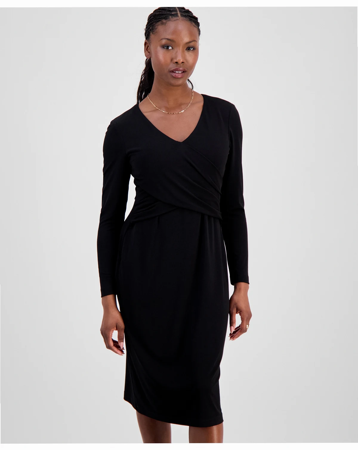 Petite Drape-Front Midi Dress