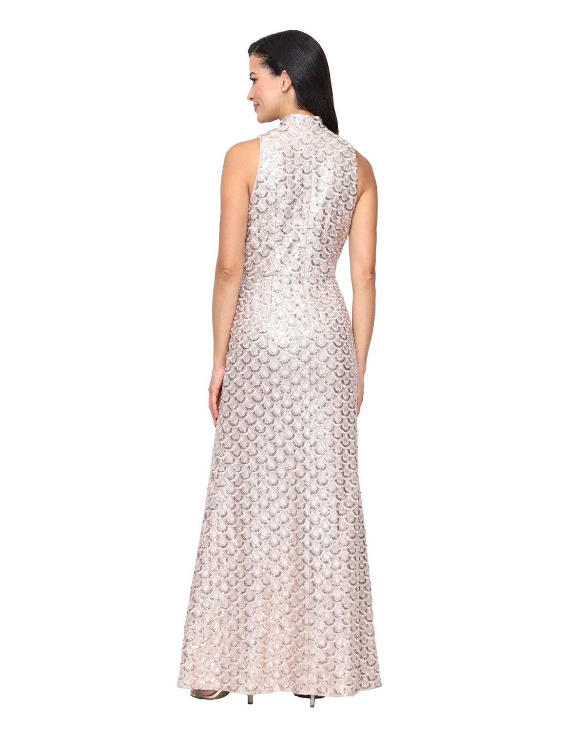 Shine for formal events in this sleeveless embroidered dress from Alex Evenings, featuring a v-neckline and A-line silhouette. A back zipper closure offers a secure, flattering fit for Mother of the Bride occasions.