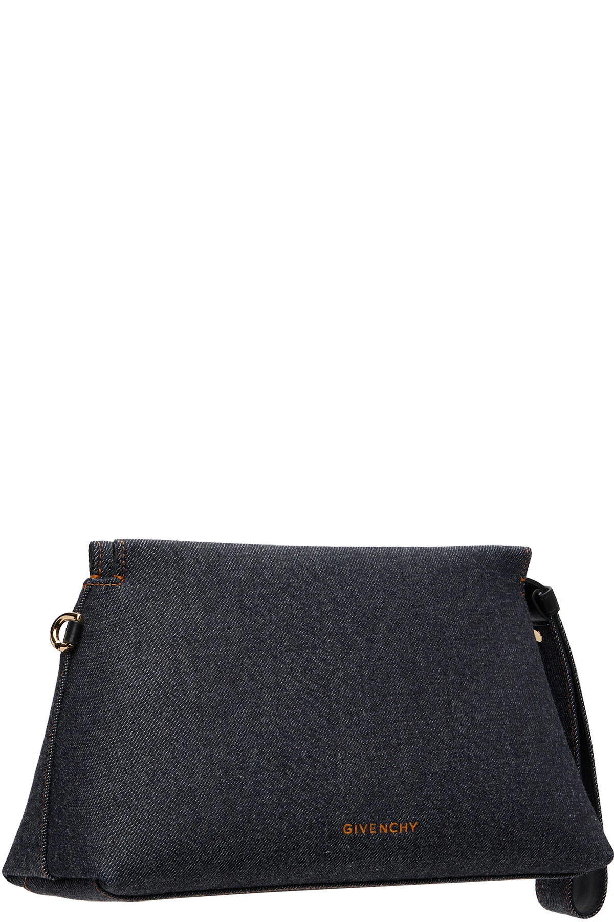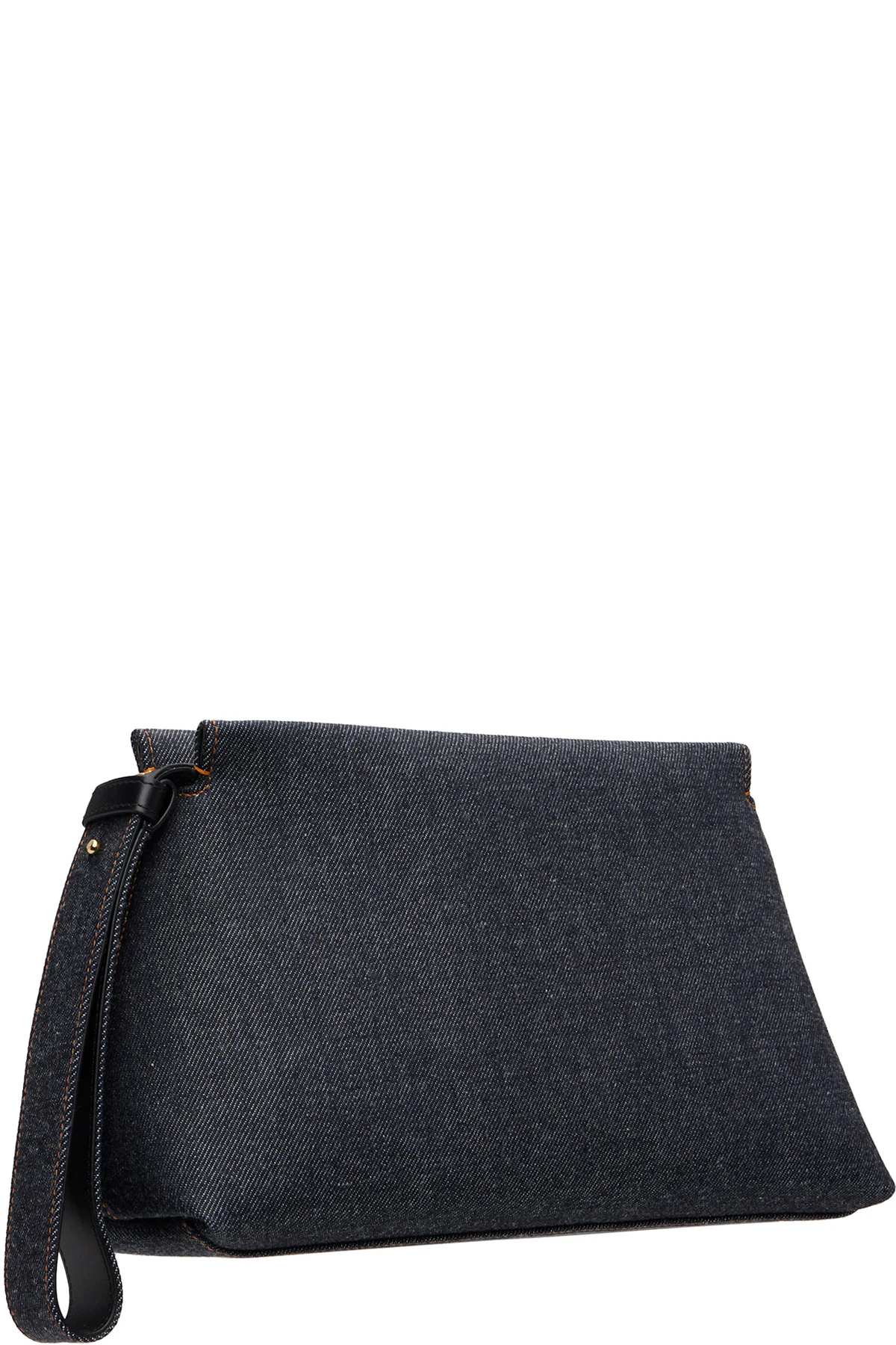Non-stretch denim pouch.