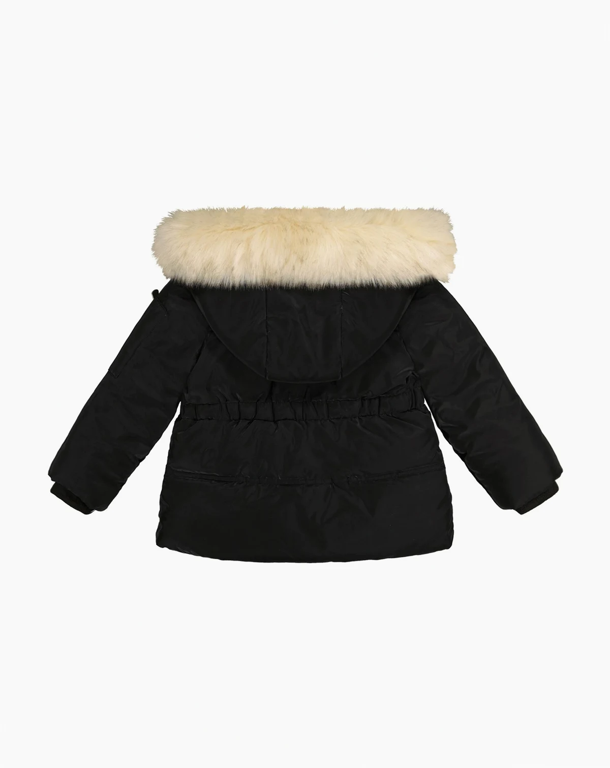 Shell: 100% polyester; faux fur trim: 80% acrylic, 20% polyester; rib knit trim: 97% polyester, 3% spandex; Velvet touch shell; velboa hood and back lining; knit cuffs