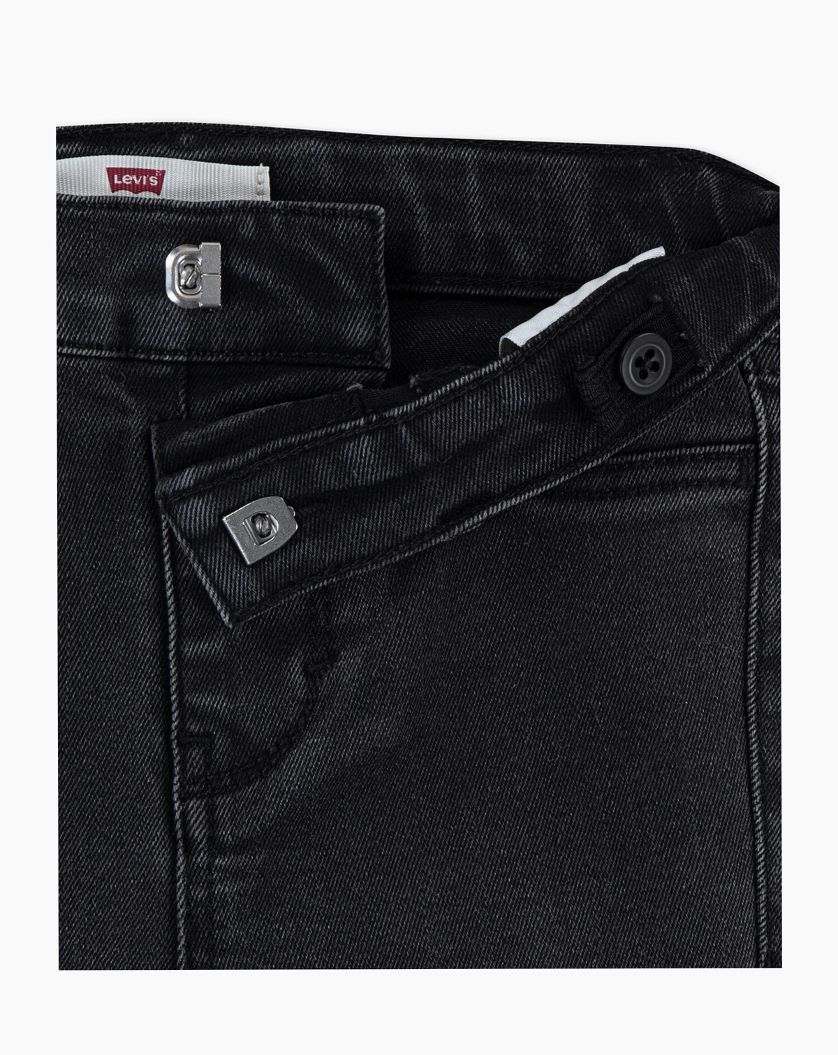 Machine wash; Jeans: stretchy slub denim, dark wash, hook and eye closure, signature 5-pocket design, flared leg.