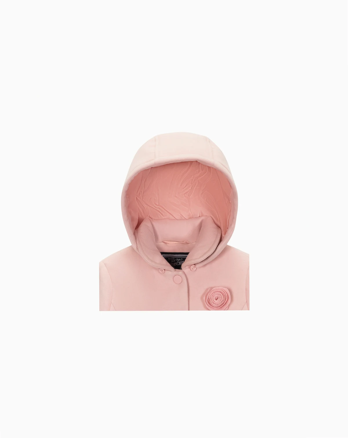 Your little one can stay warm and look cool in this charming dress coat from S Rothschild & Co, featuring a removable hood and a front button snap closure for easy wear. An attached corsage on the yoke adds a sweet, elegant touch, while snap-front pockets offer both style and functionality.