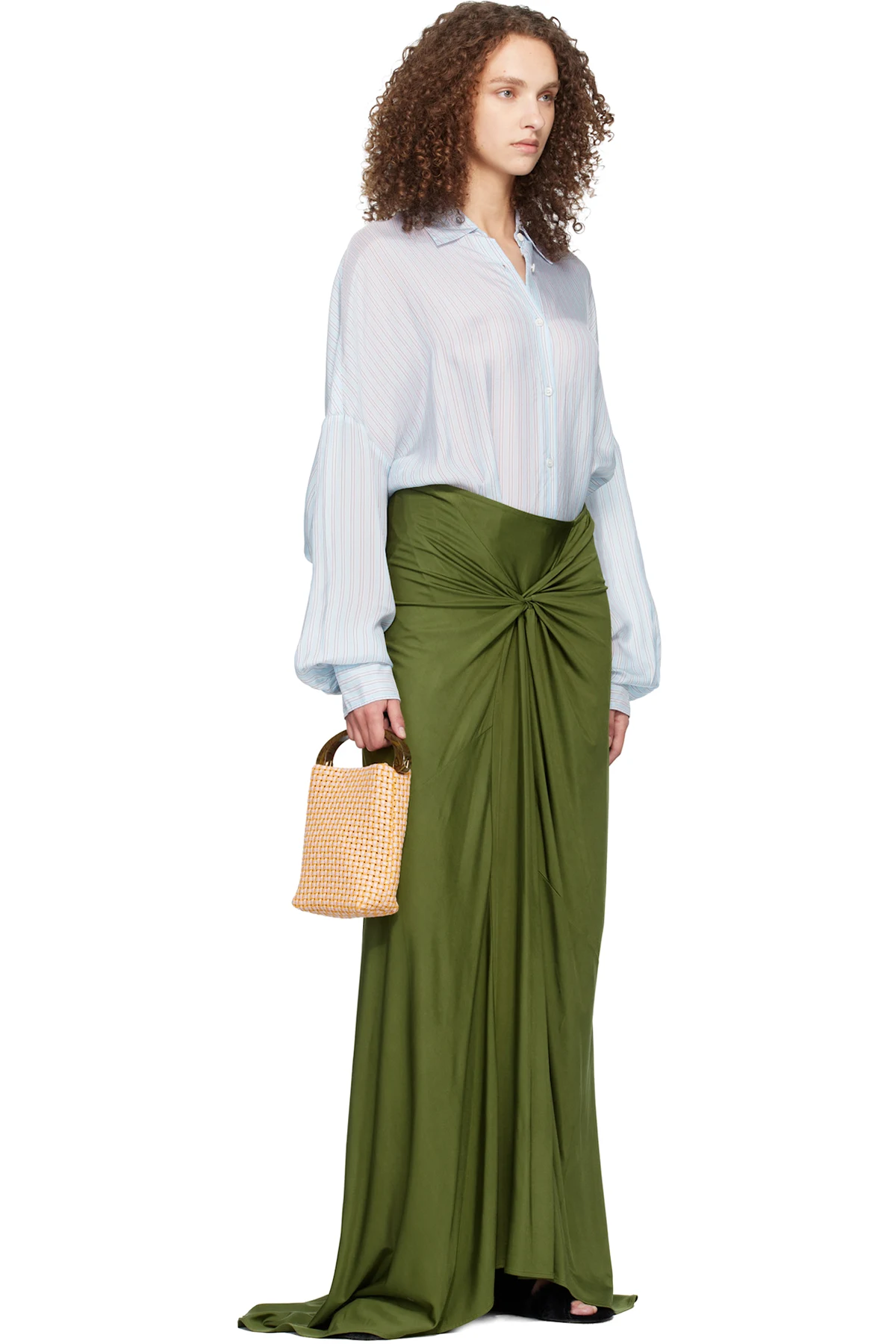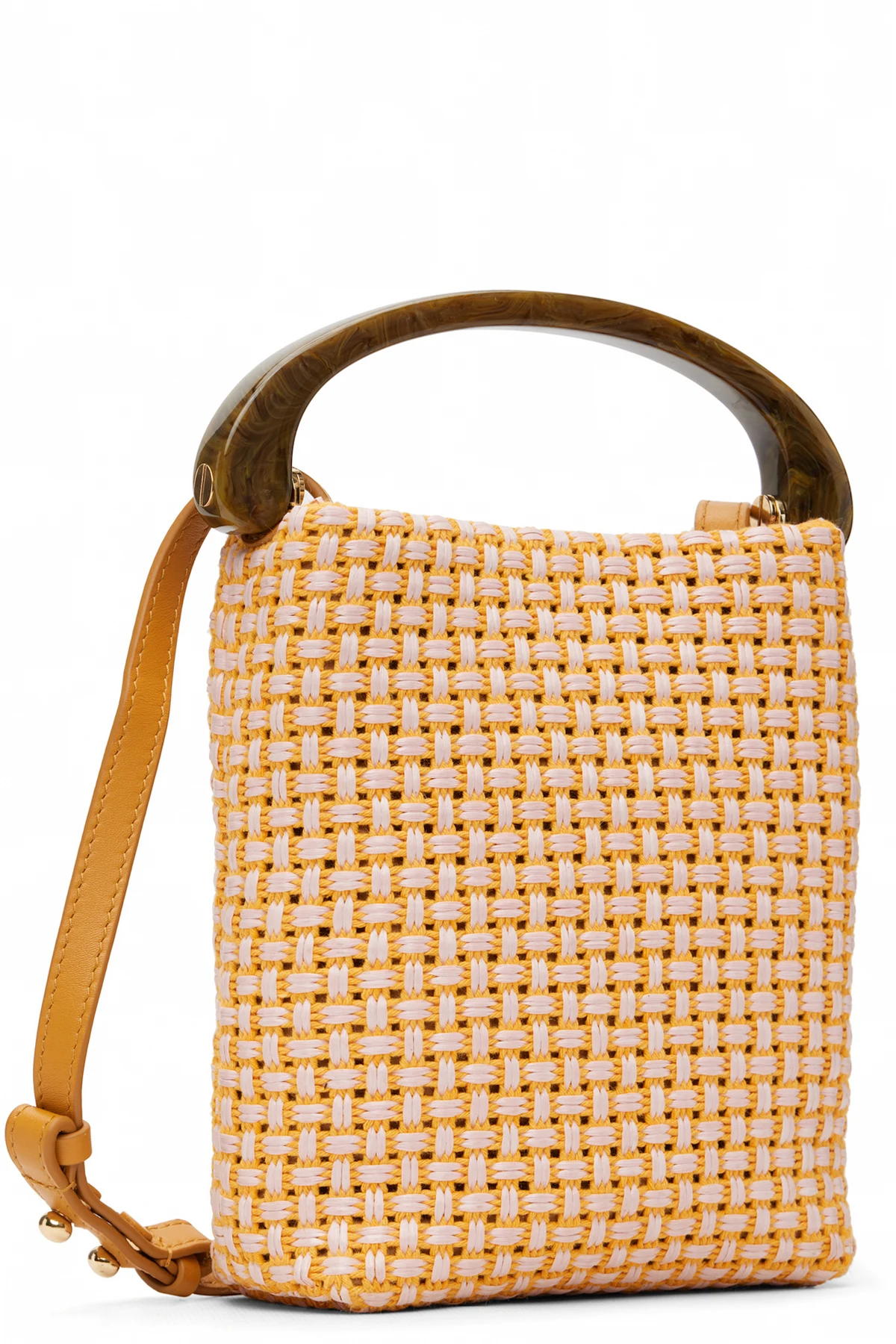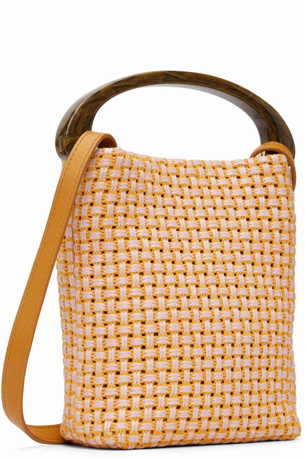 Basket-woven cotton-blend top handle bag.