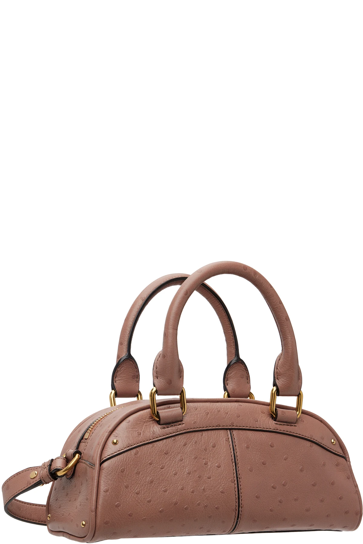 Ostrich-embossed buffalo leather top handle bag.