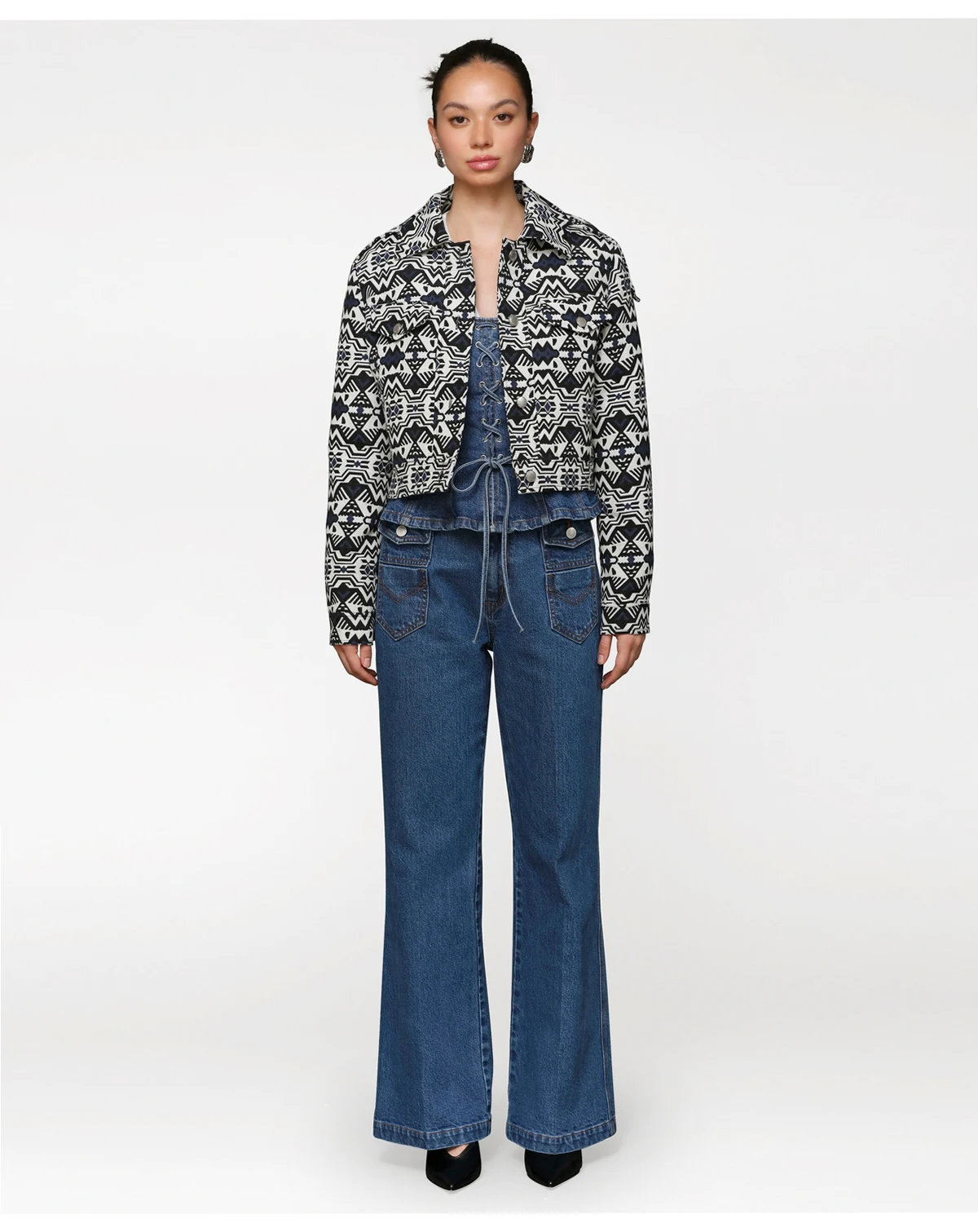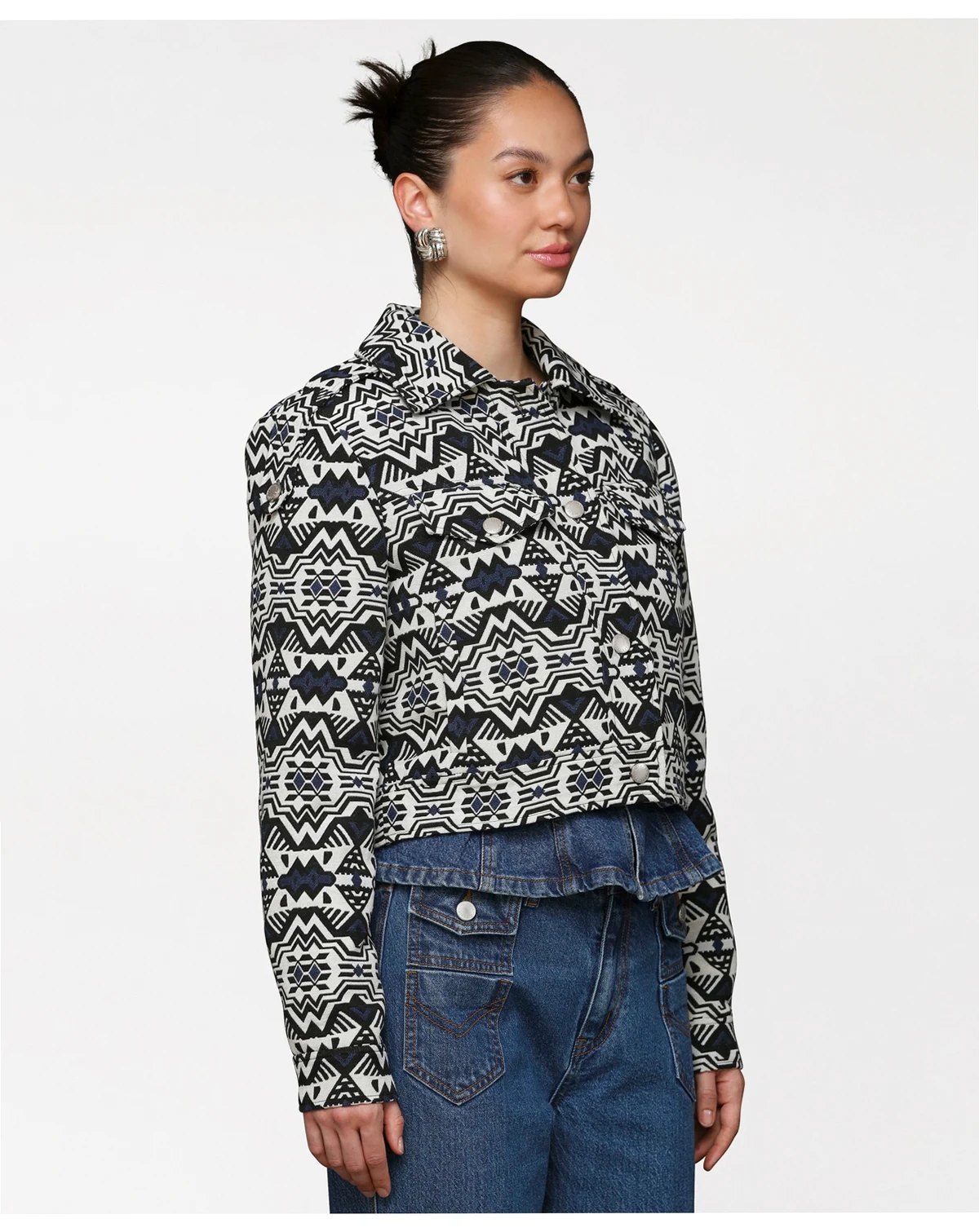 Women’s Printed Cropped Trucker Jacket