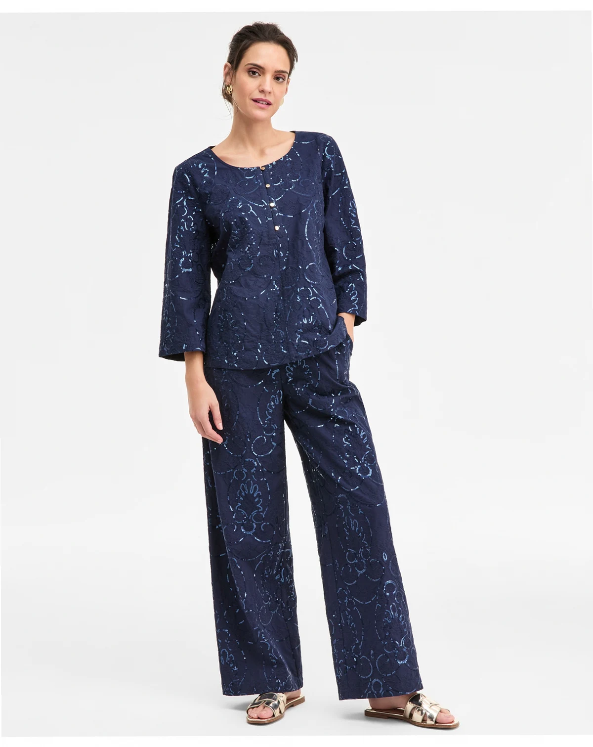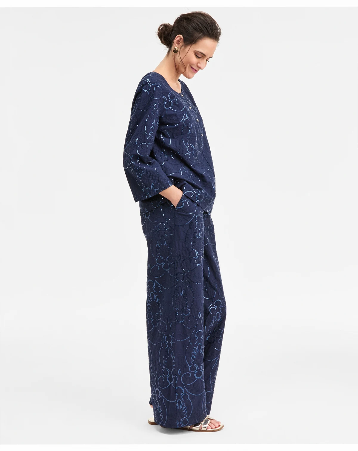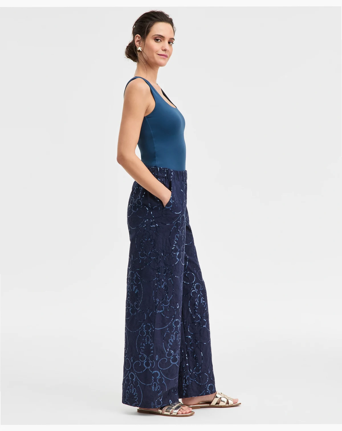 Approx. model height is 5'10" and she is wearing a size small; Approx. inseam: 30"; Rise: approx. 11-1/4"; leg opening: approx. 23-2/3"