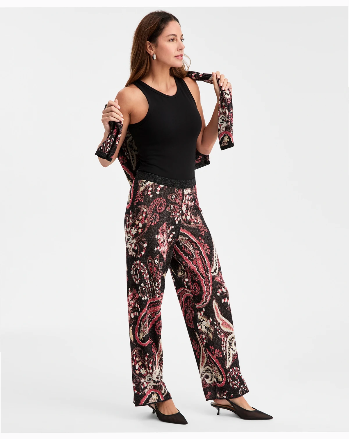 Approx. model height is 5'10" and she is wearing size small; Approx. inseam: 29"; High rise; approx. rise: 11-1/4"; leg opening: approx. 9-1/4"