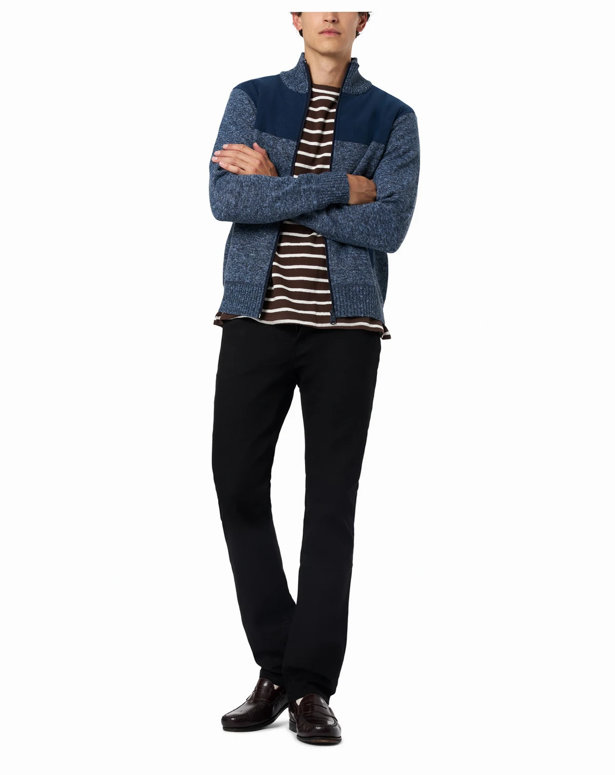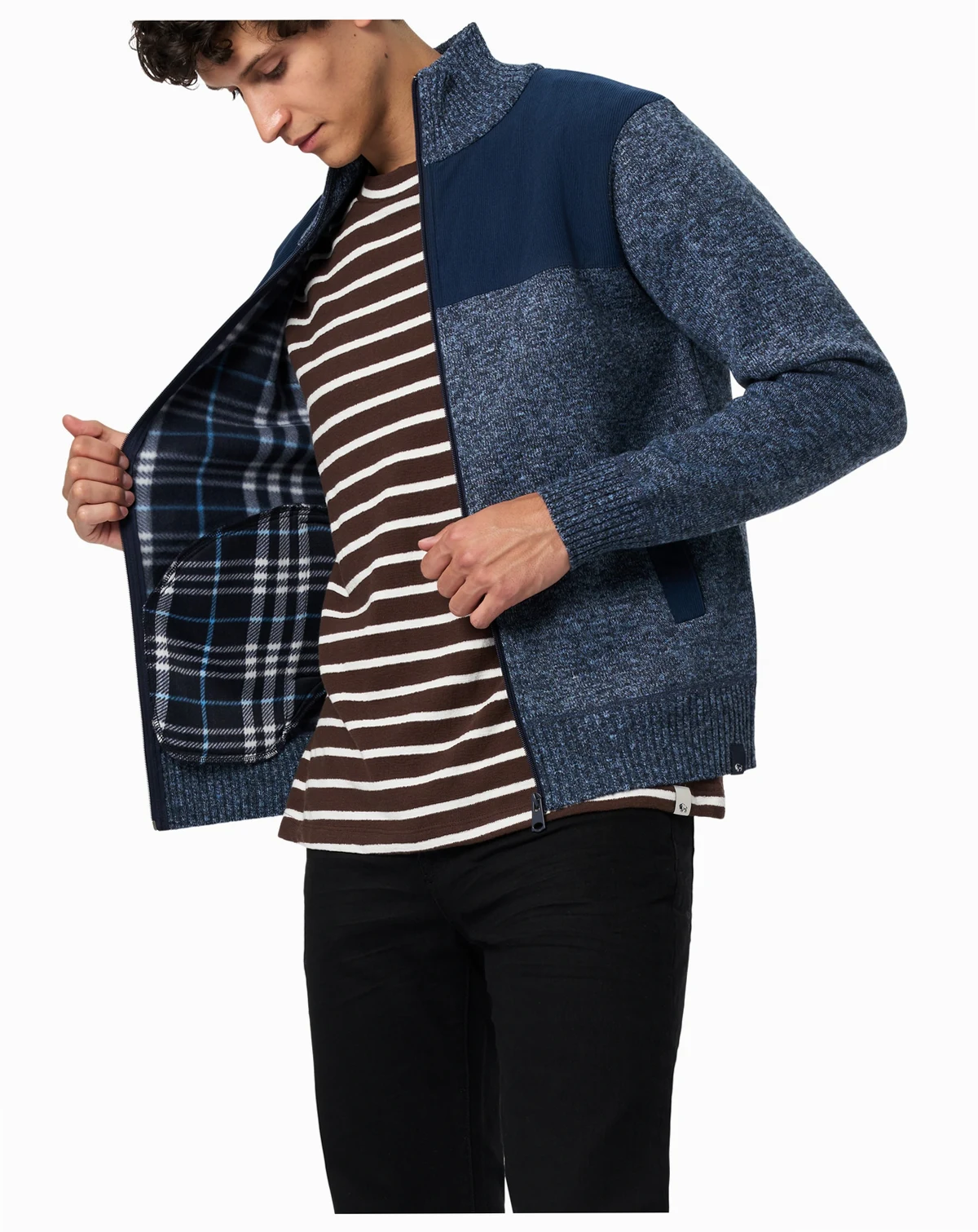 Layer with versatile style in this Buffalo David Bitton knit jacket with full-zip design. Contrast woven shoulder panels add structural detail to the soft midweight knit. Brushed flannel lining offers extra warmth and premium comfort. Front welt pockets provide practical storage for everyday essentials.
