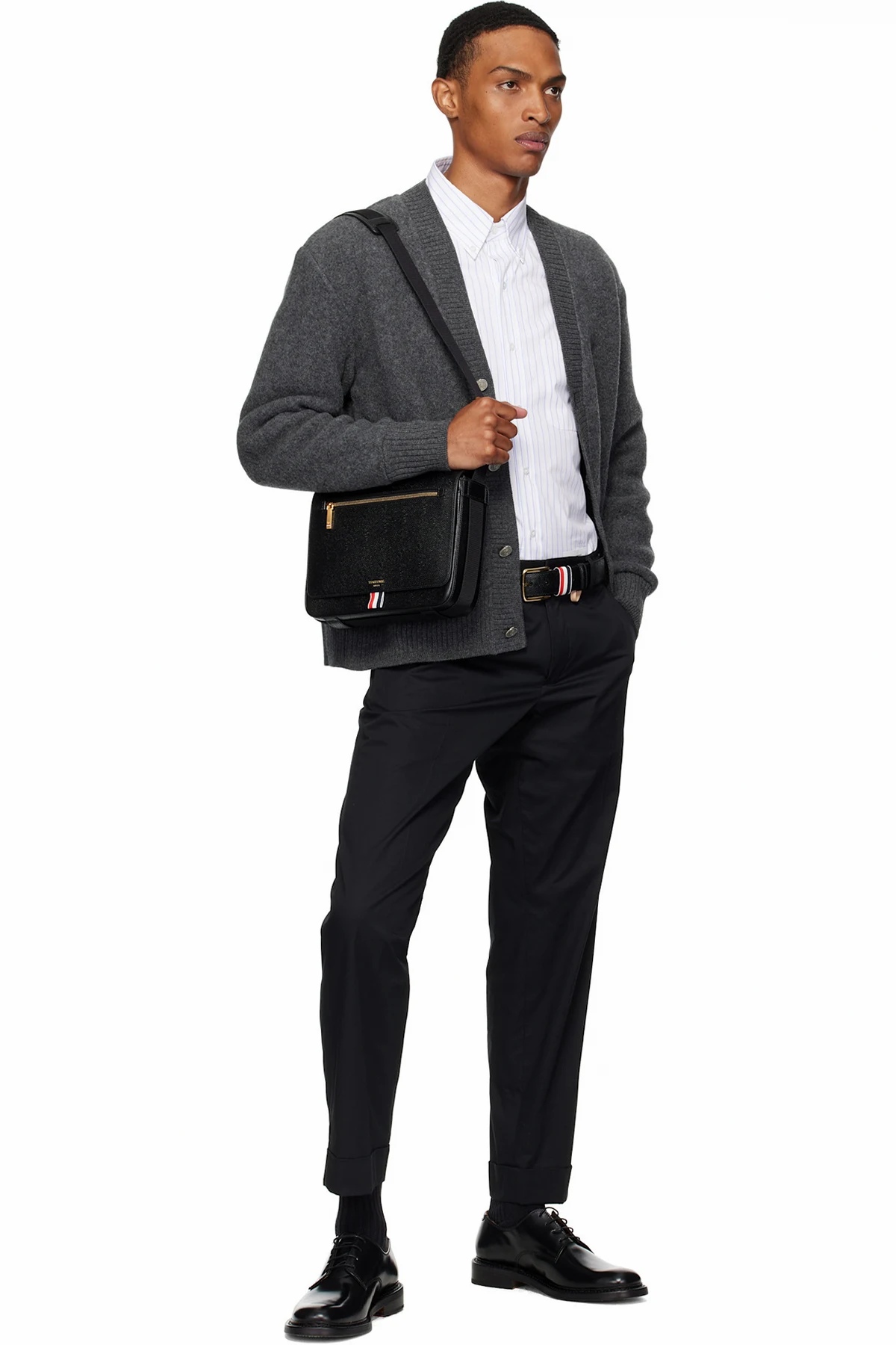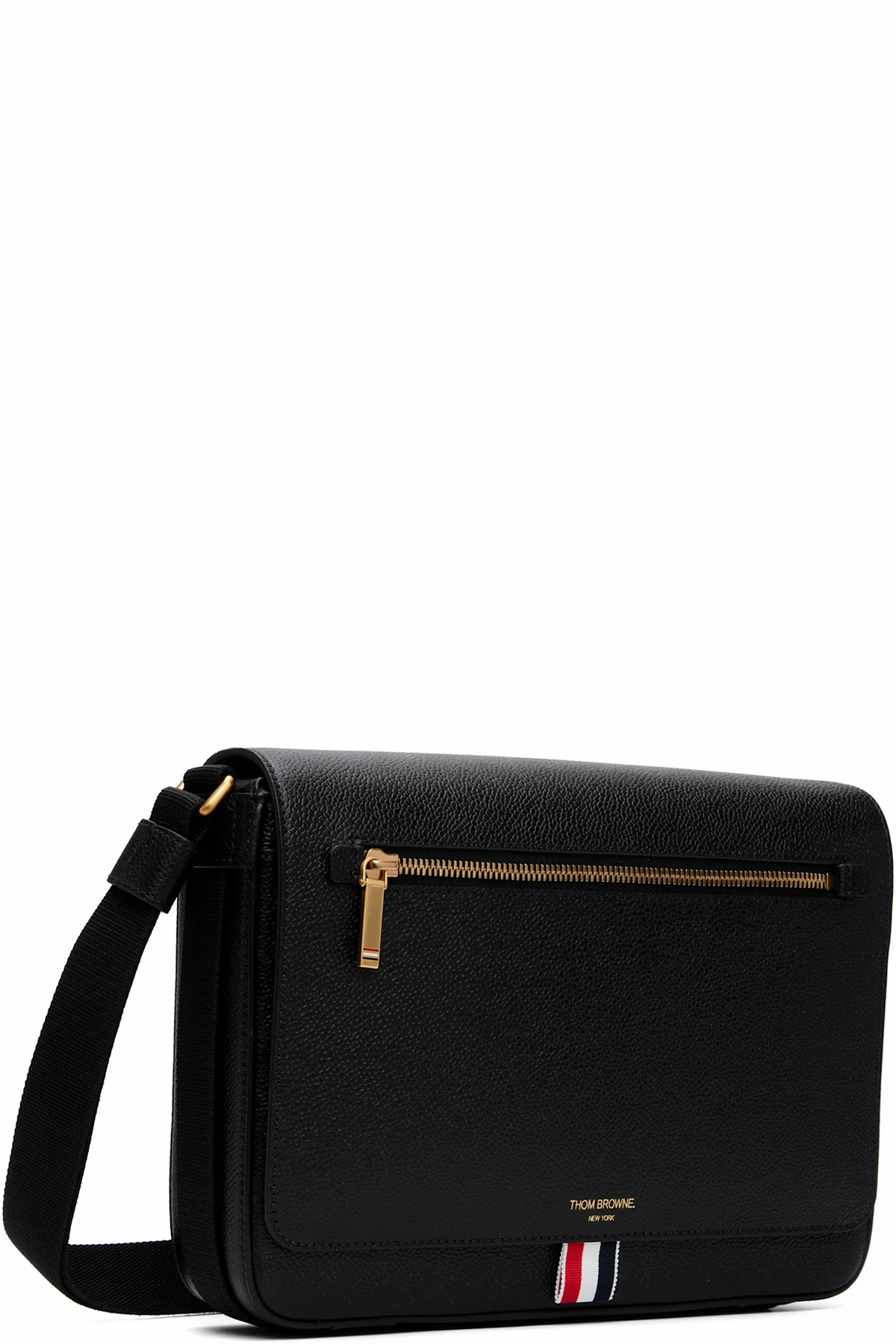 Pebble-grained calfskin messenger bag.