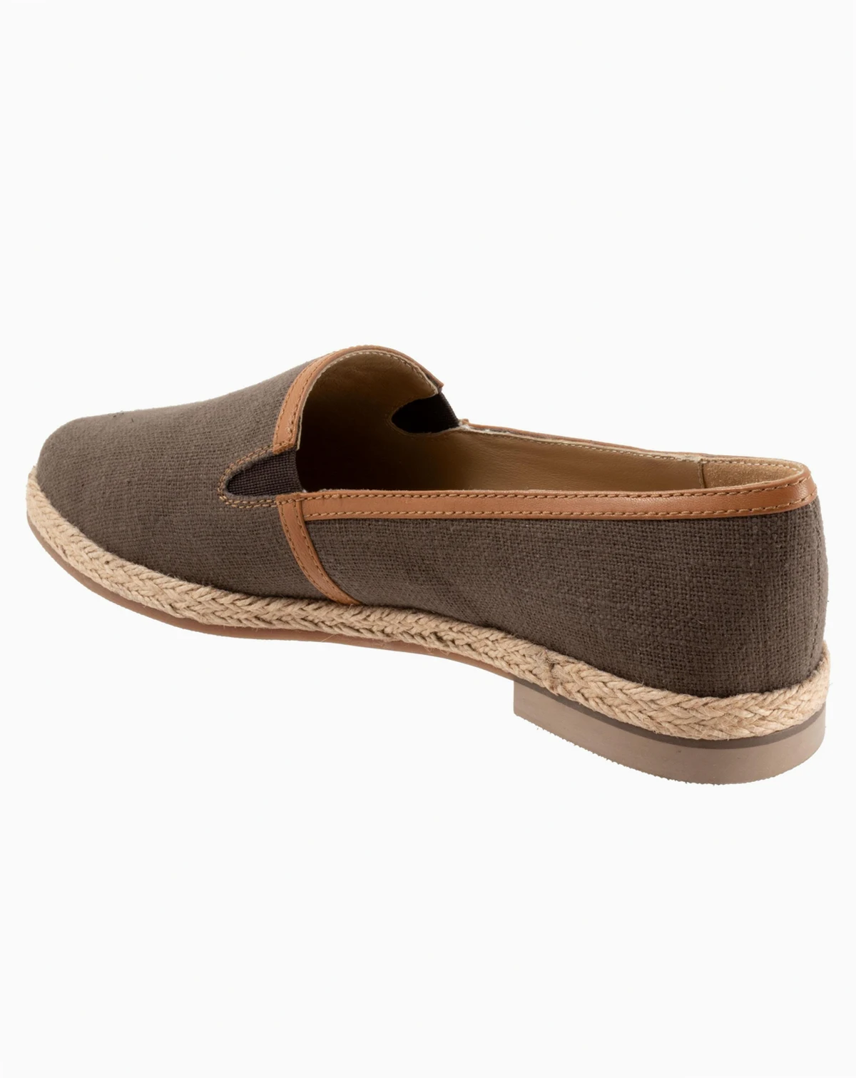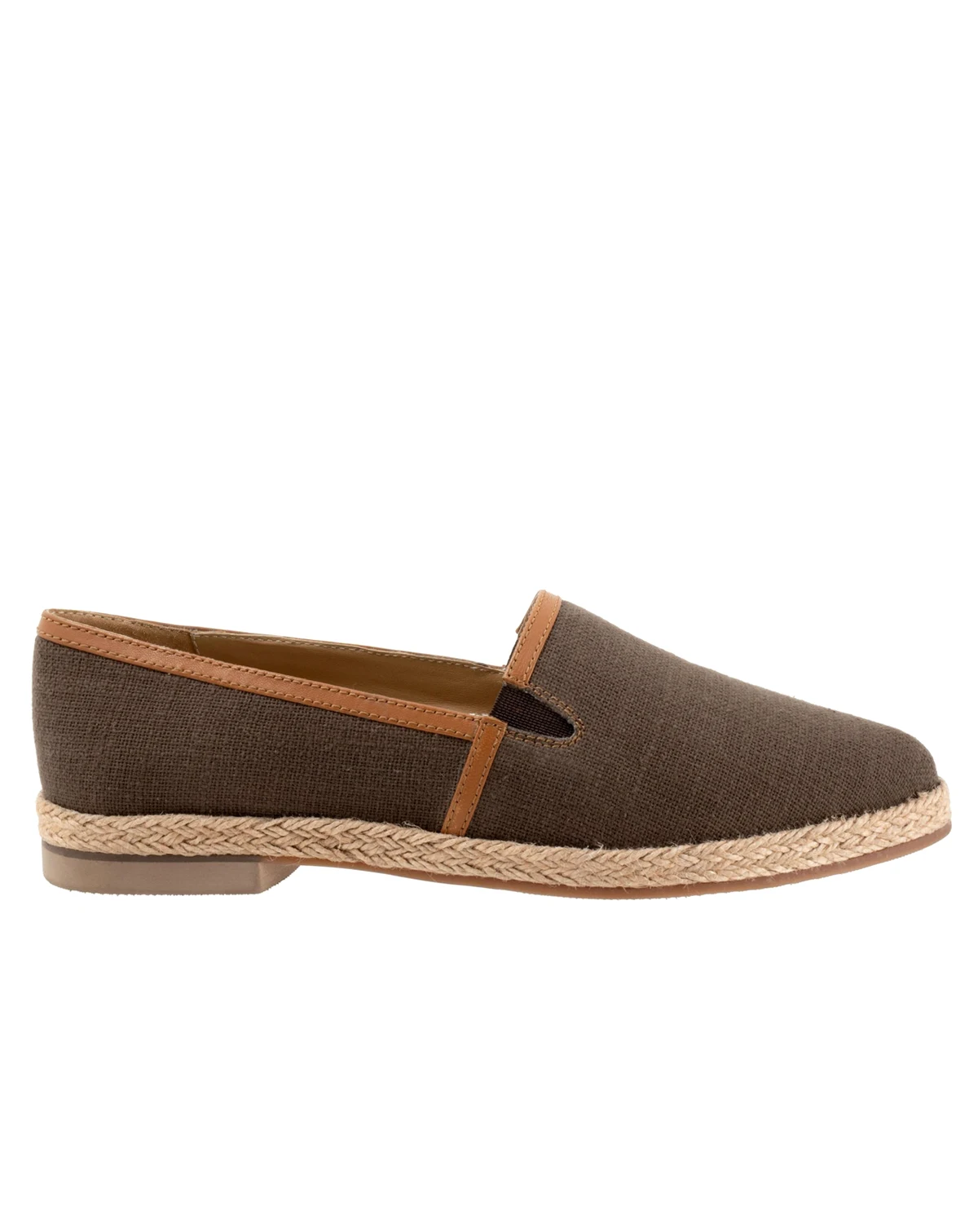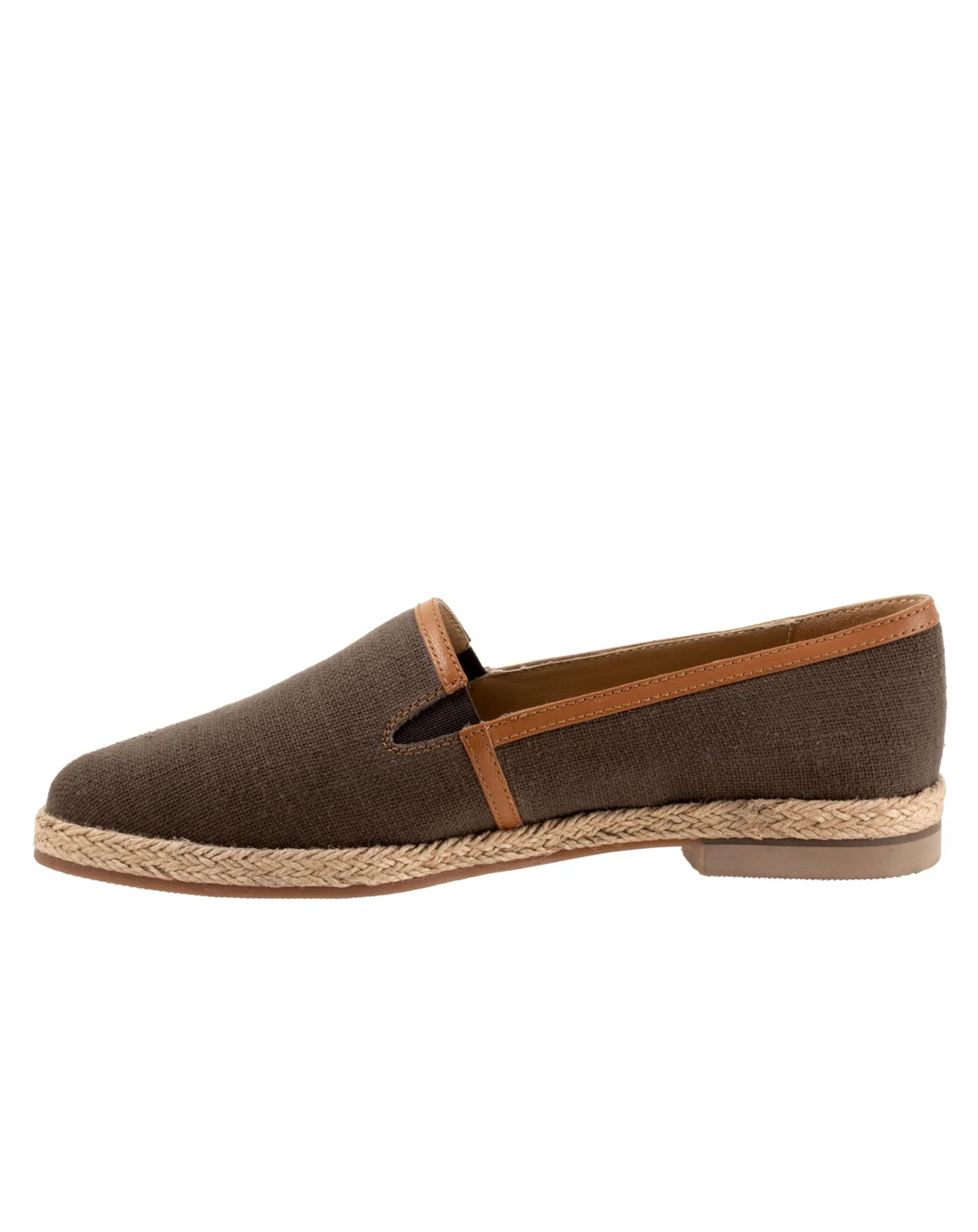 Estelle has espadrille accents and is available in both leather and canvas uppers. Enjoy the comfort of dual sided elastic goring and a full leather-lined interior.