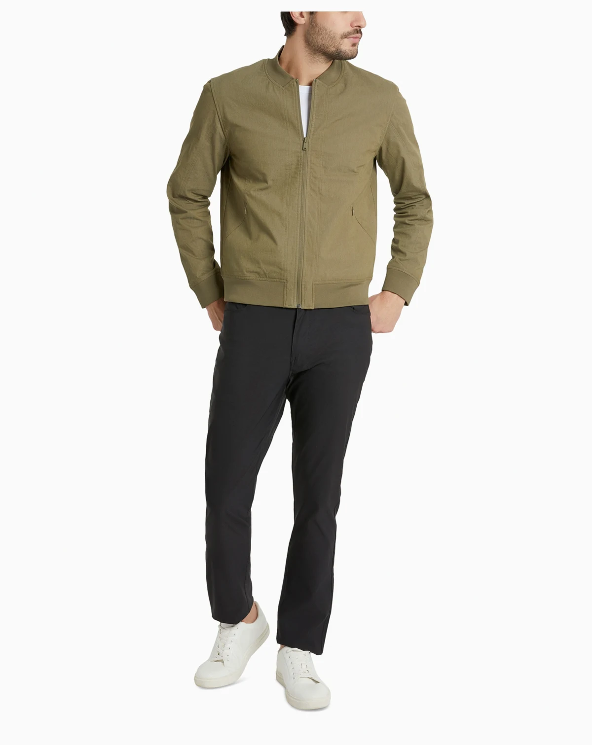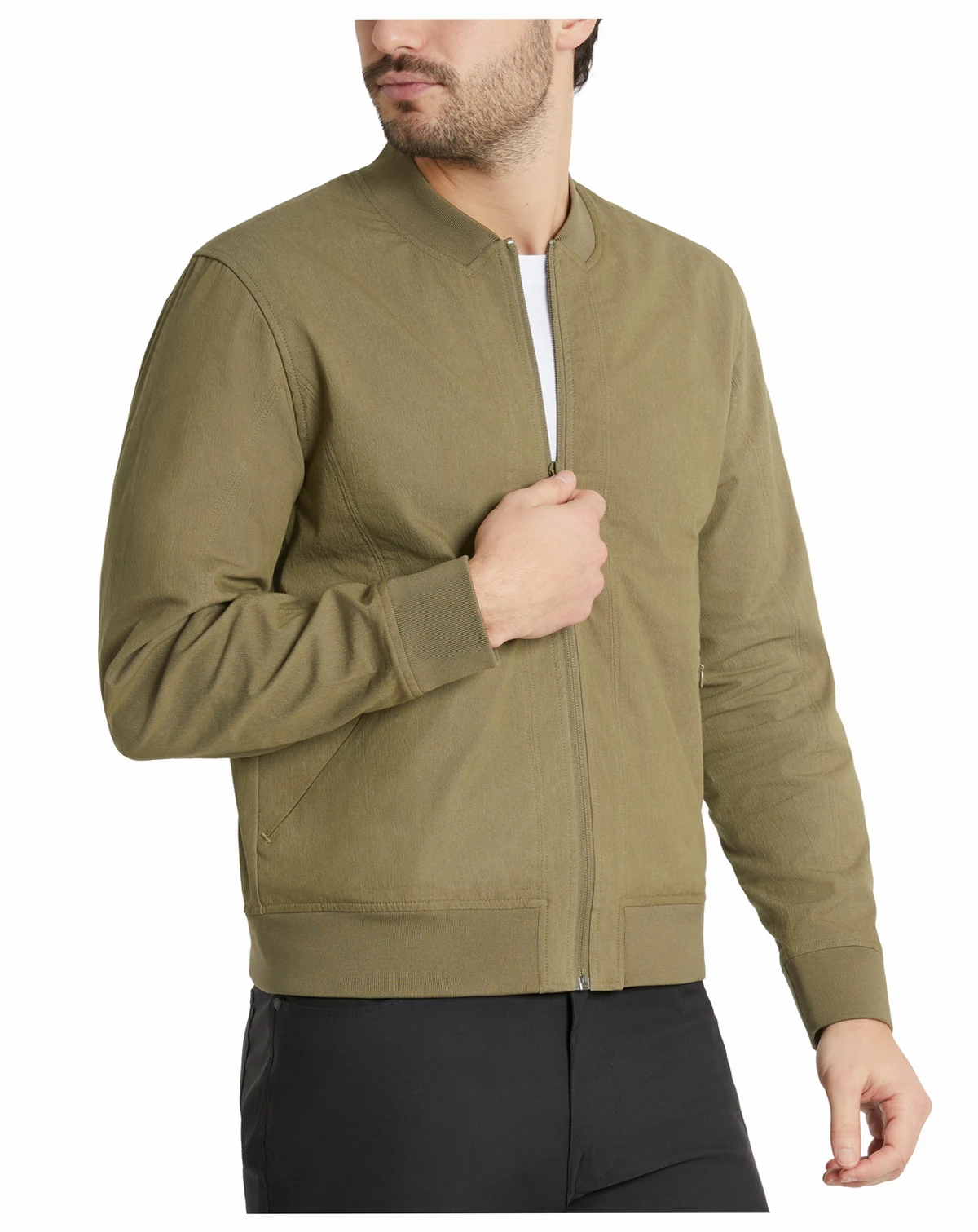 Head out in style in this lightweight engineered bomber jacket from Kenneth Cole. Easy to care for and moisture wicking, this versatile jacket is the perfect light layer.