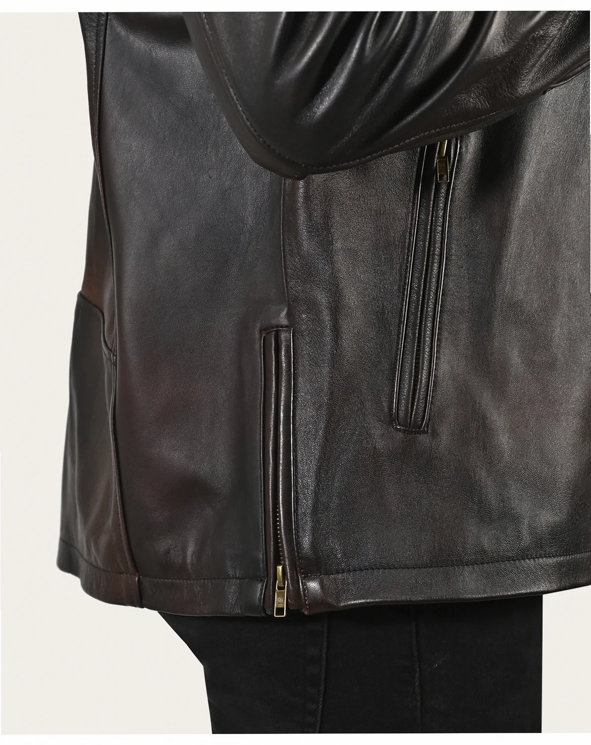 The Modern Cafe Racer jacket from Frye is rendered in authentic cowhide leather giving it a soft and smooth feel. This jacket has an Action Back that expands and moves with the person wearing it. A distinctive lining with an inner pocket adds to the appeal of this jacket as well as extra security.