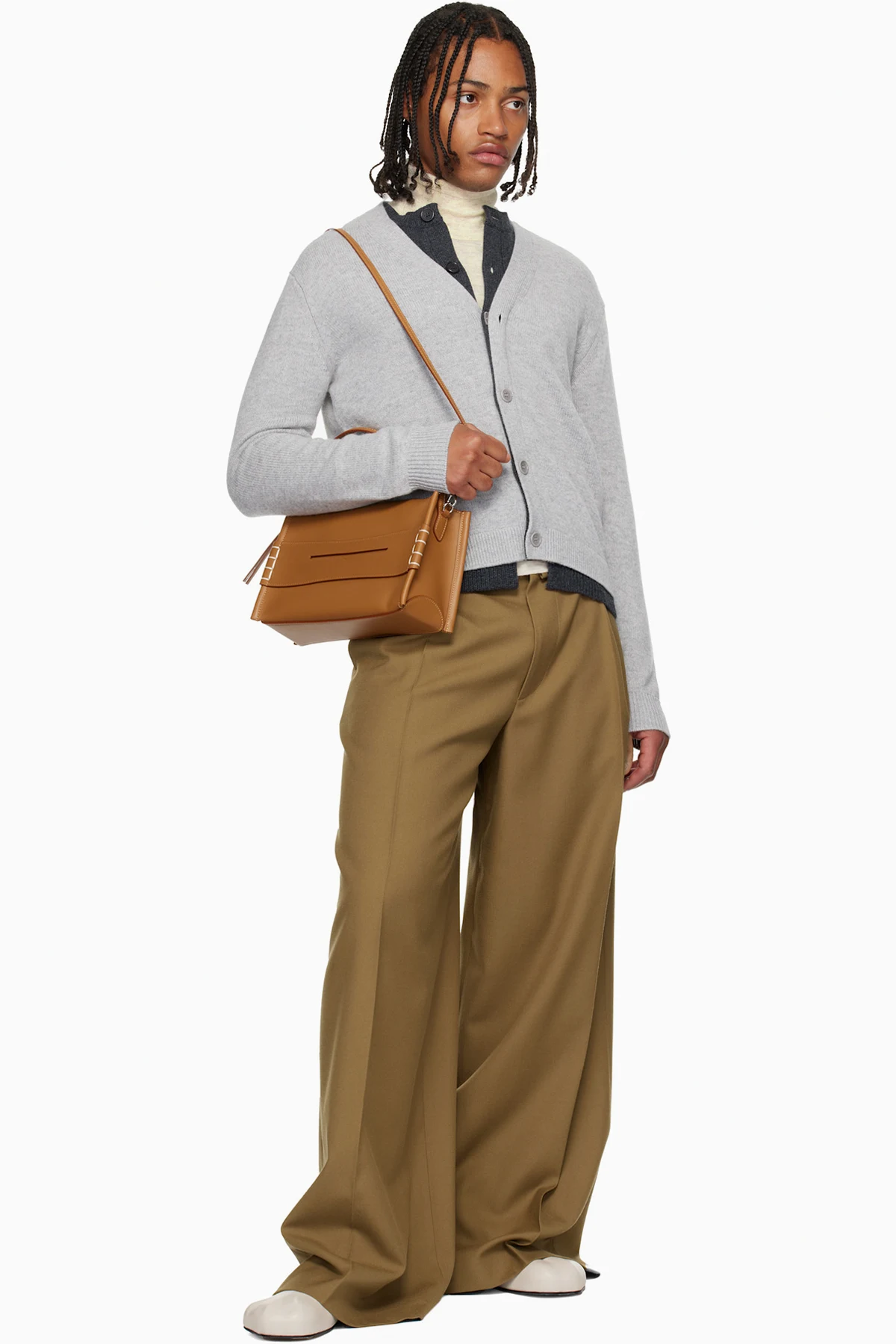Buffed calfskin messenger bag.