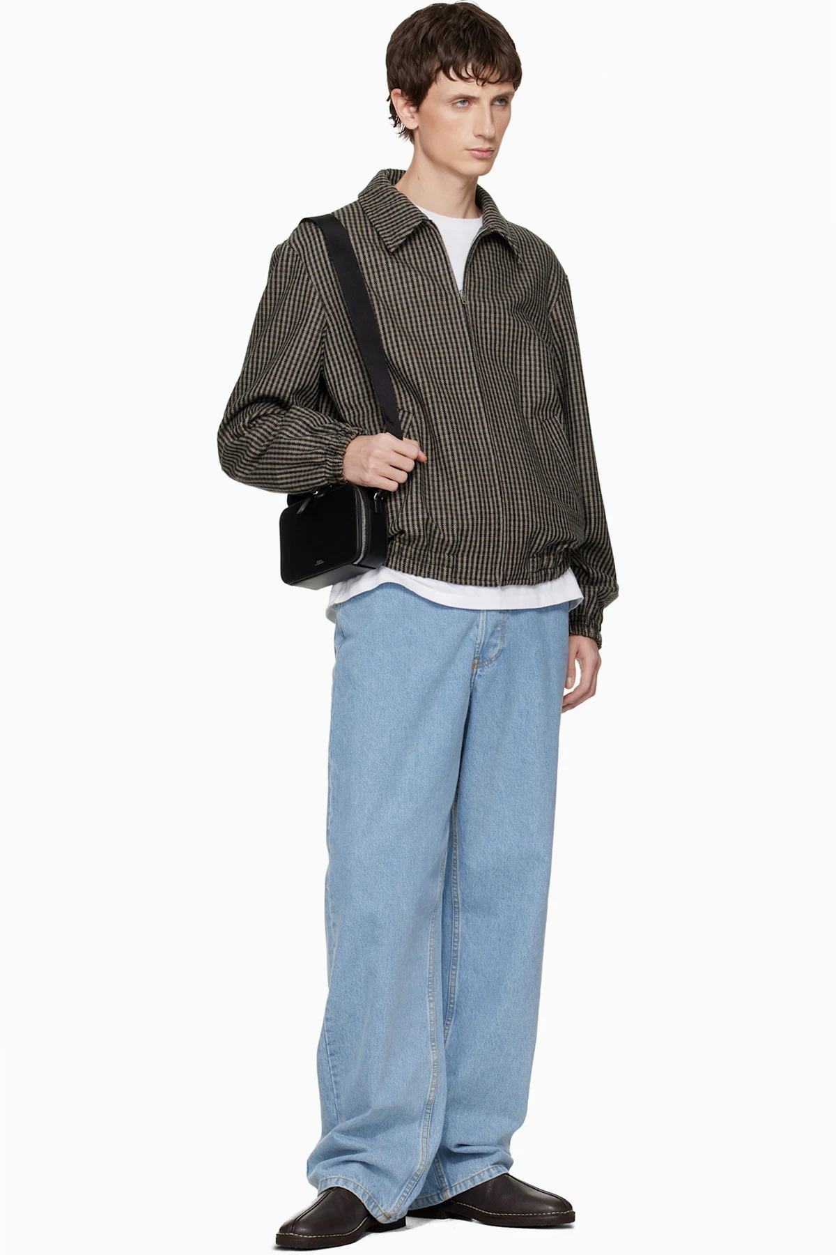 Vegetable-tanned buffed leather shoulder bag.