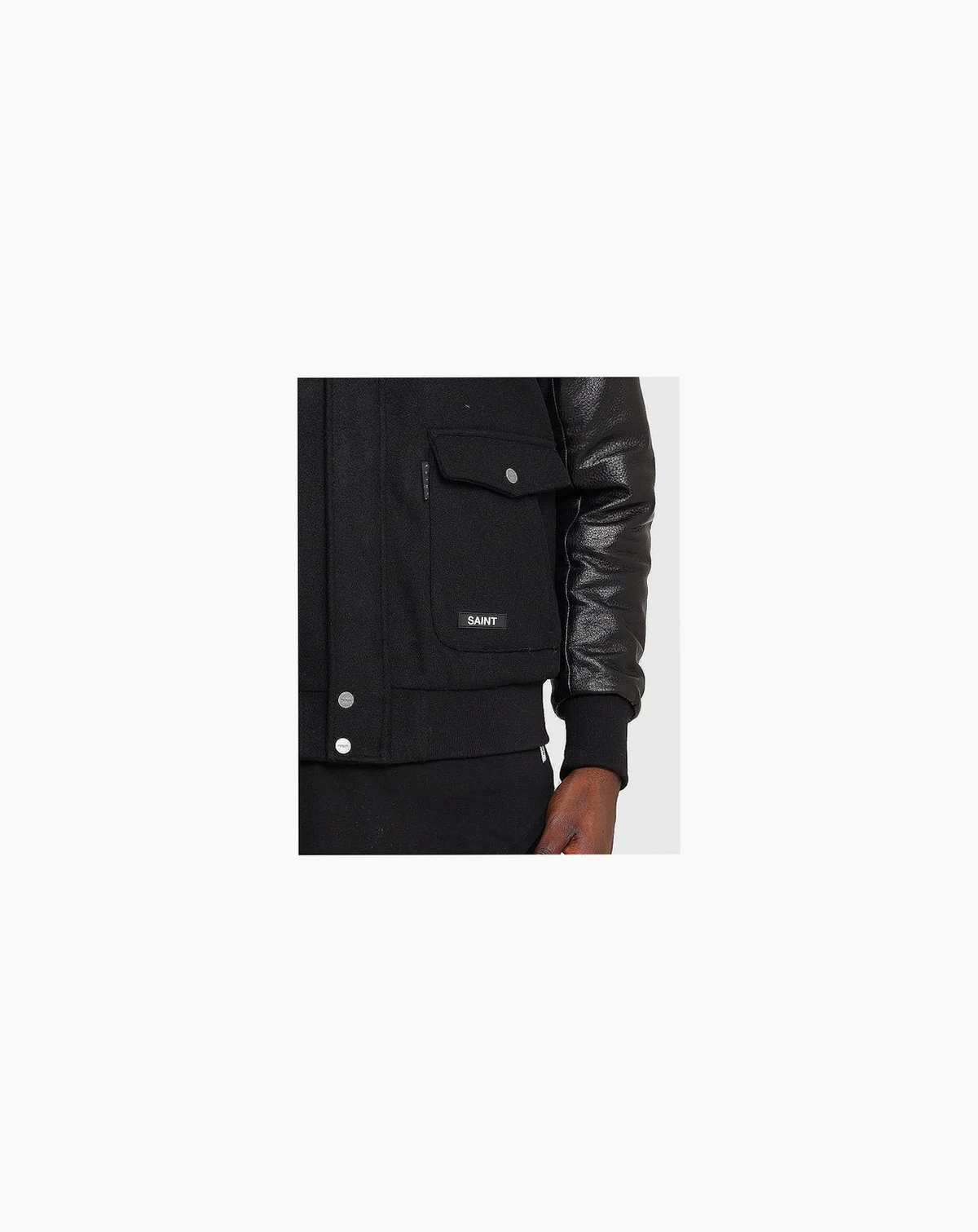When you're layering up, you'll want to grab this jacket every time! With a warm faux sherpa collar and quilted lining, this wool and leather jacket will definitely elevate your streetwear look!