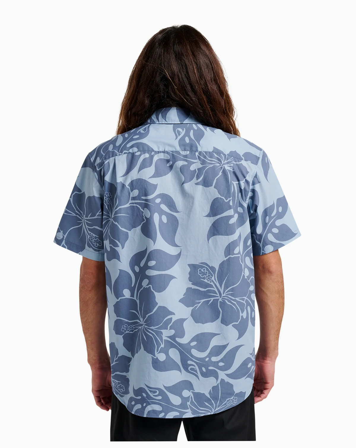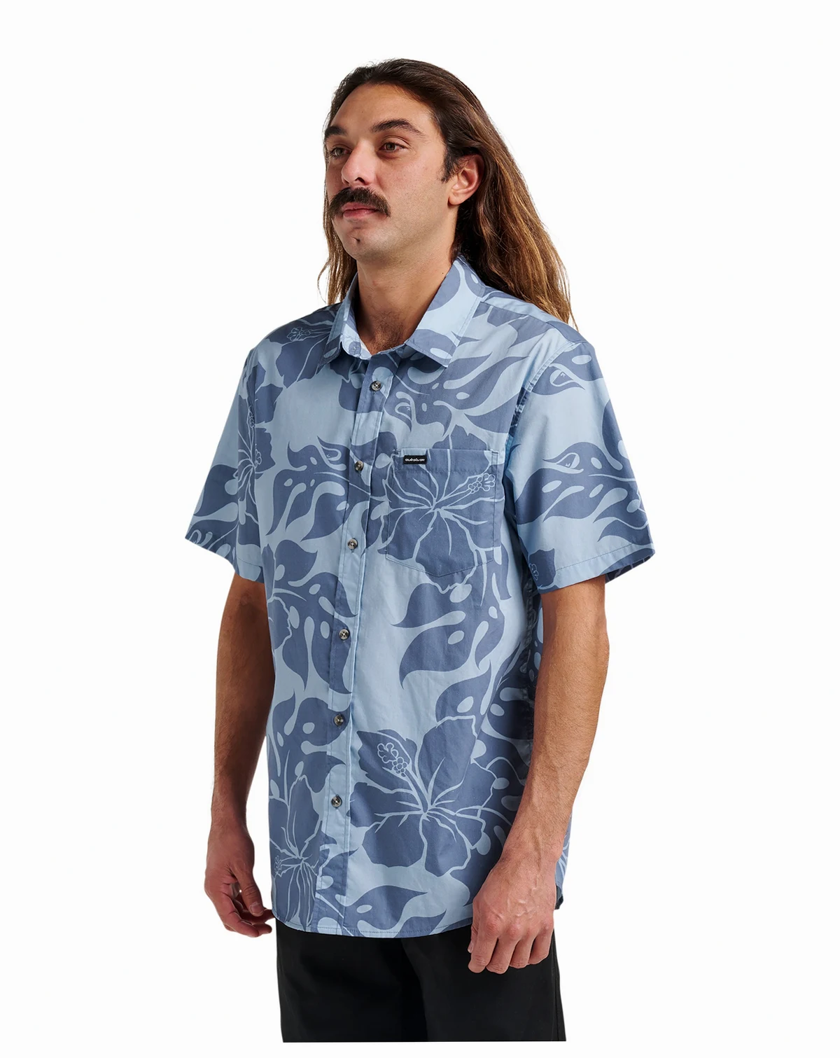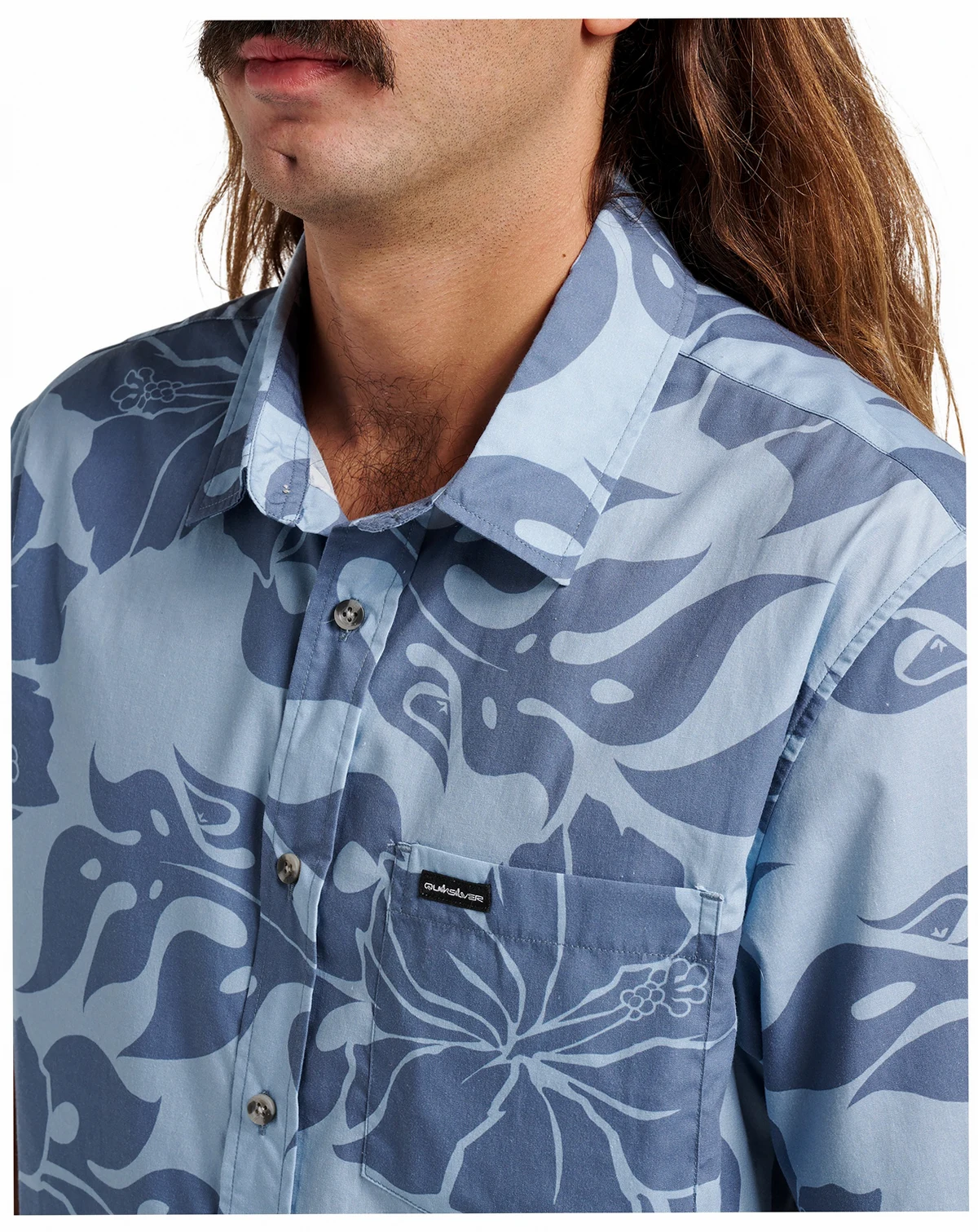 Experience comfort and style with Quiksilver's Short-Sleeve Woven Shirt, featuring a single chest pocket, and scalloped hem.