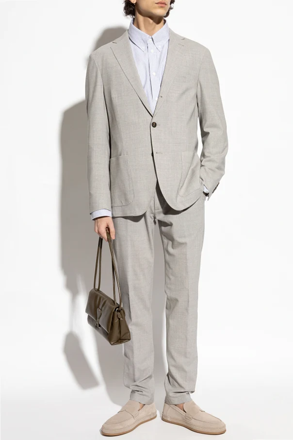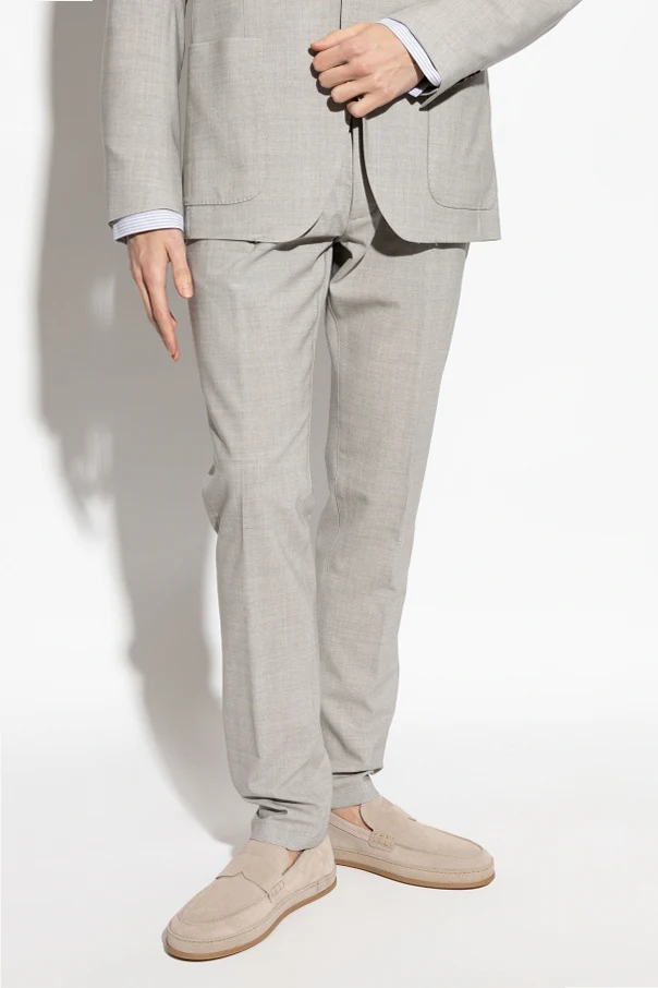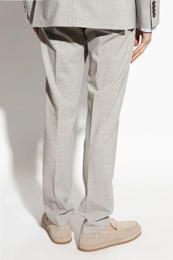 Introducing the Wełniane spodnie ze zwężanymi nogawkami from the illustrious house of Eleventy , these distinguished pants are a testament to sartorial elegance. Cloaked in a refined light gray, they are crafted from luxurious wool, ensuring exceptional comfort and quality.