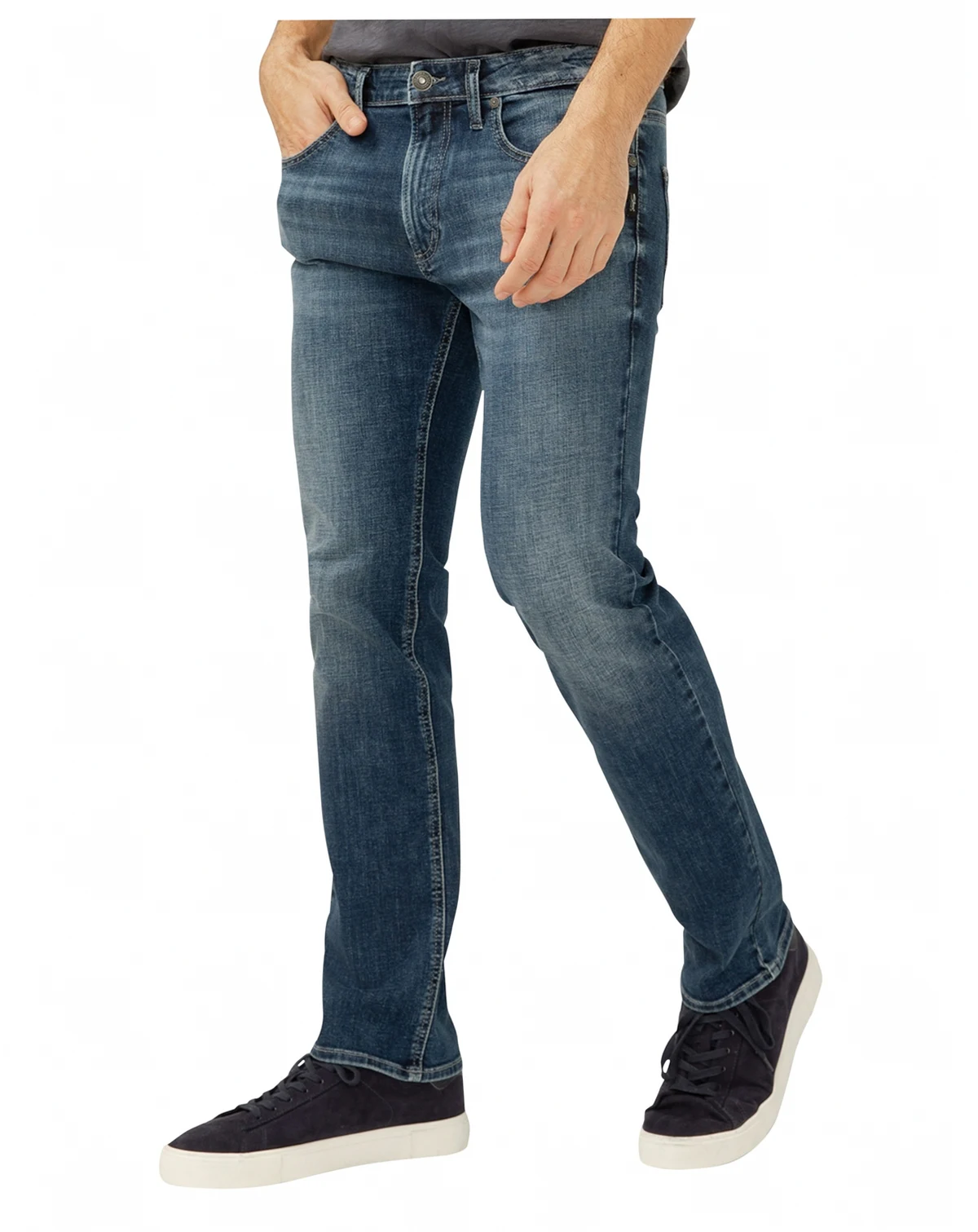 Allan slim fit jeans give you a modern look with extra comfort. These jeans sit just below the waist and feature a slim fit through the hip and thigh that relaxes at the knee. Finished with a 16" straight leg opening, perfect for day-to-night wear.