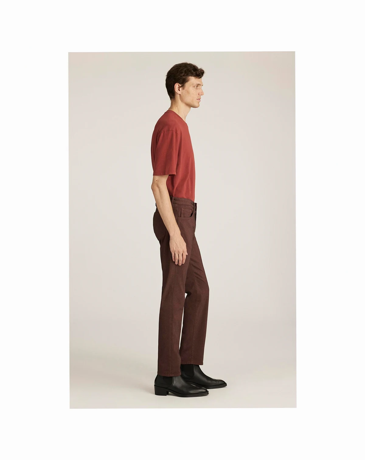 The perfect blend of a slim and straight leg. Marcus has a versatile shape, designed with a comfortable regular rise that runs straight throughout the hip, thigh, and leg opening. This pair comes in a rosey shade.
