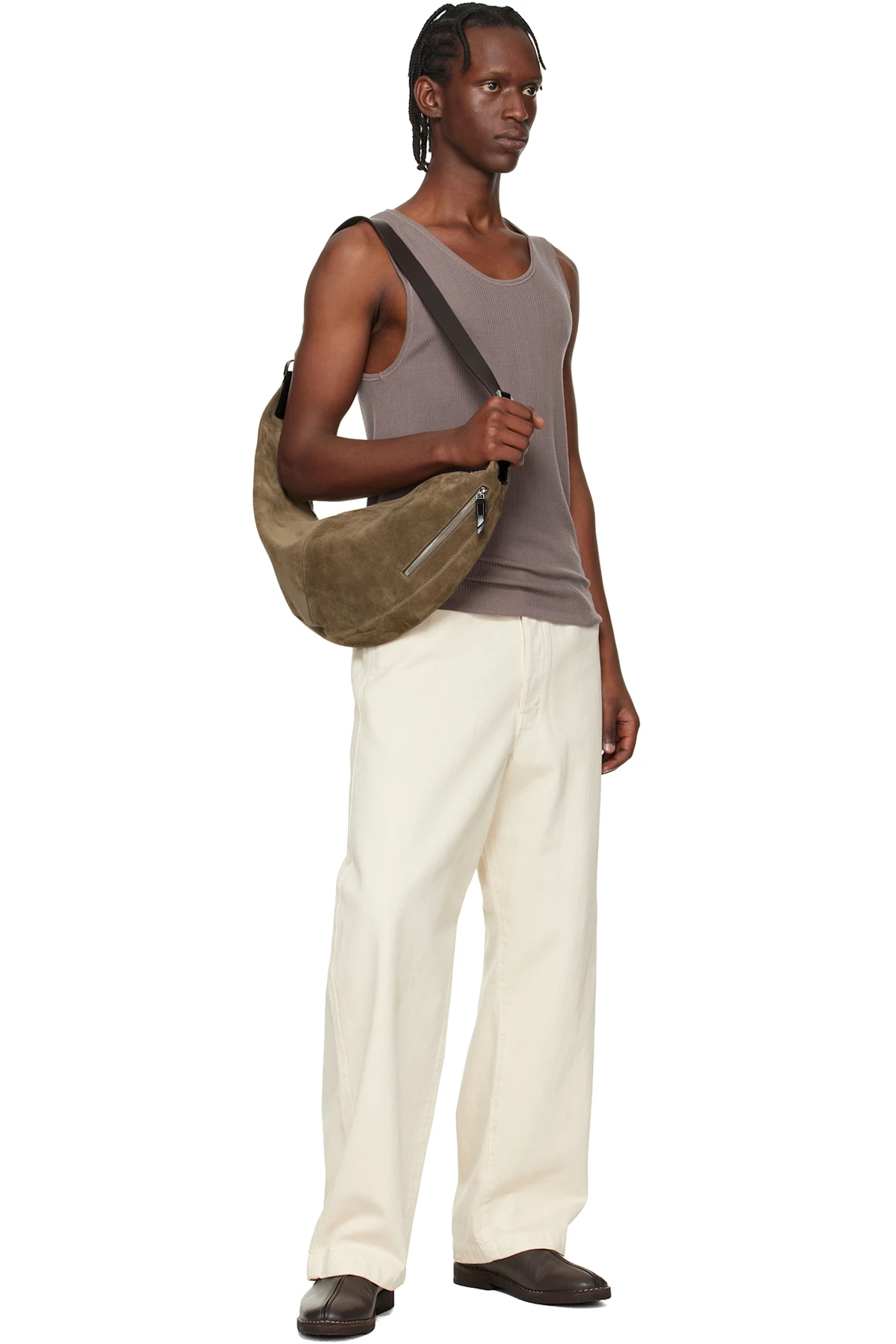 Suede messenger bag.