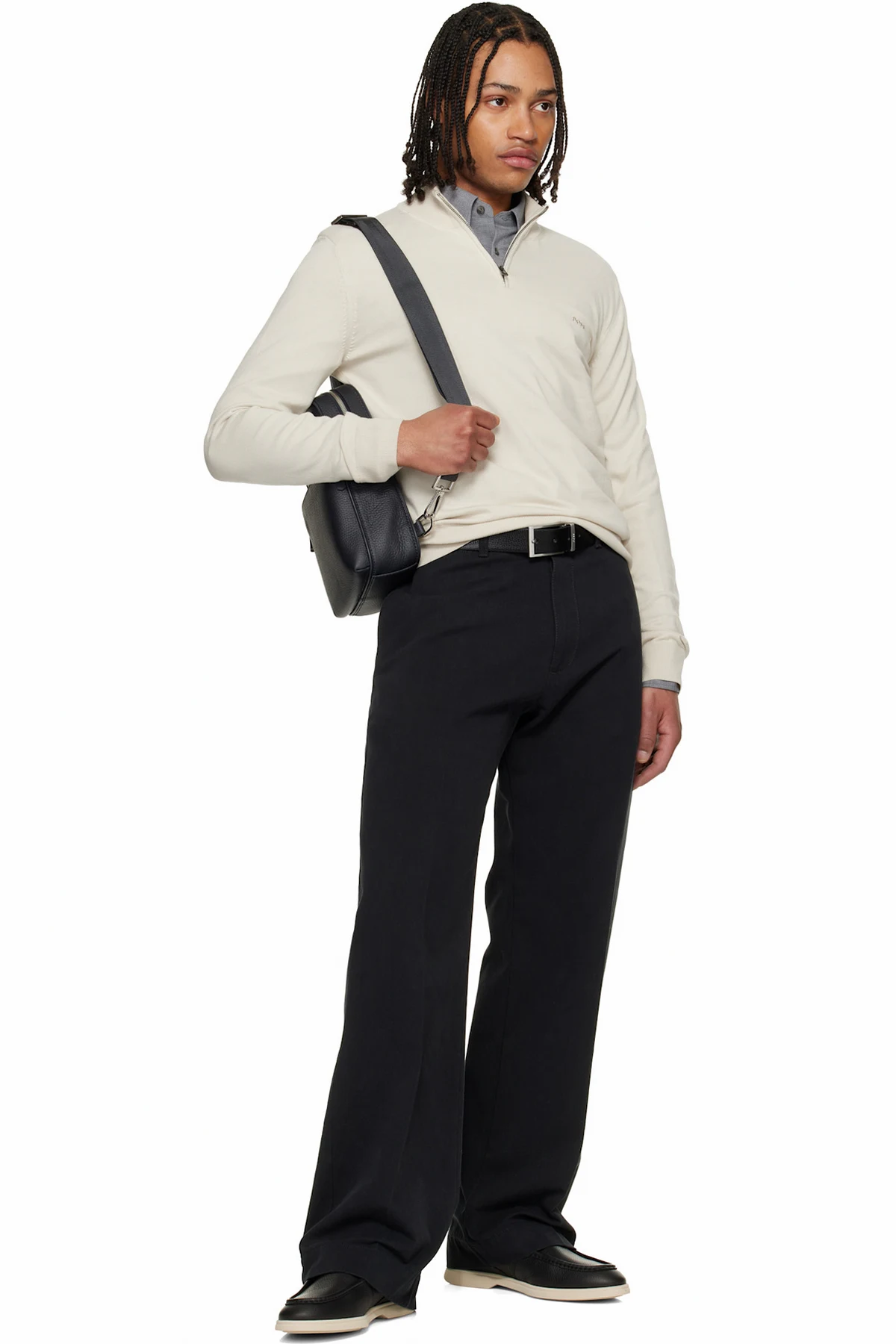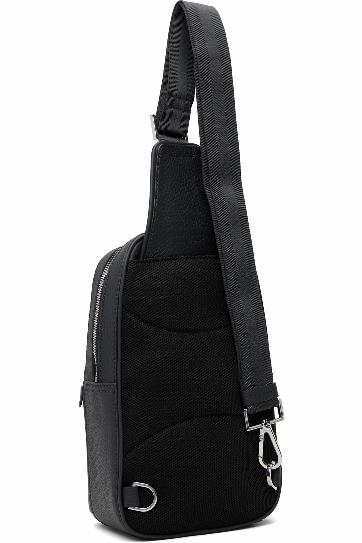 Grained leather messenger bag.