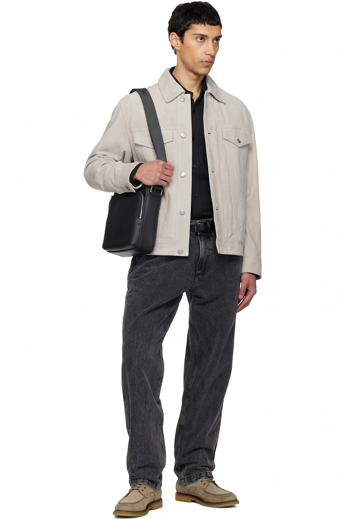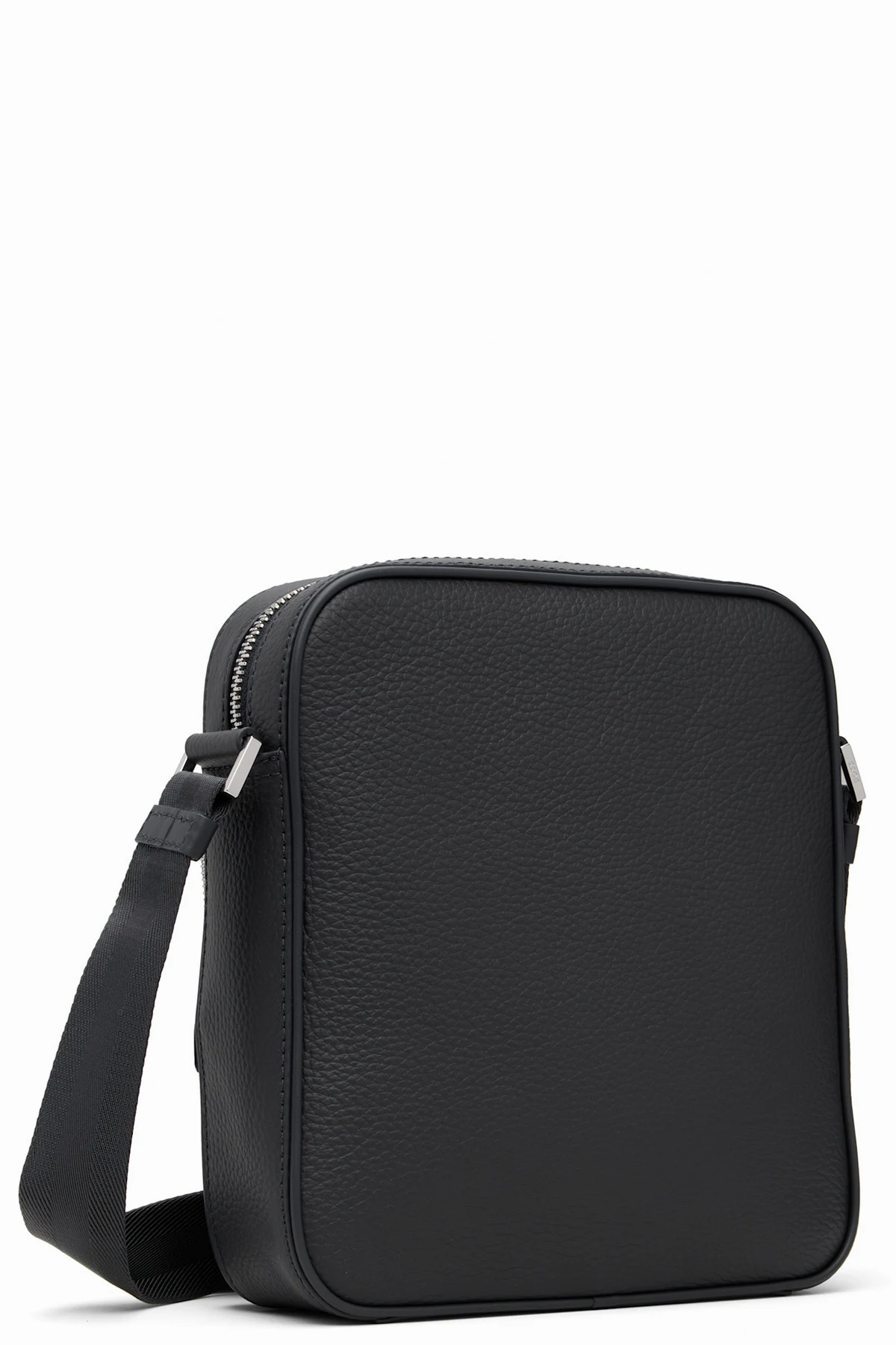 Grained leather messenger bag.
