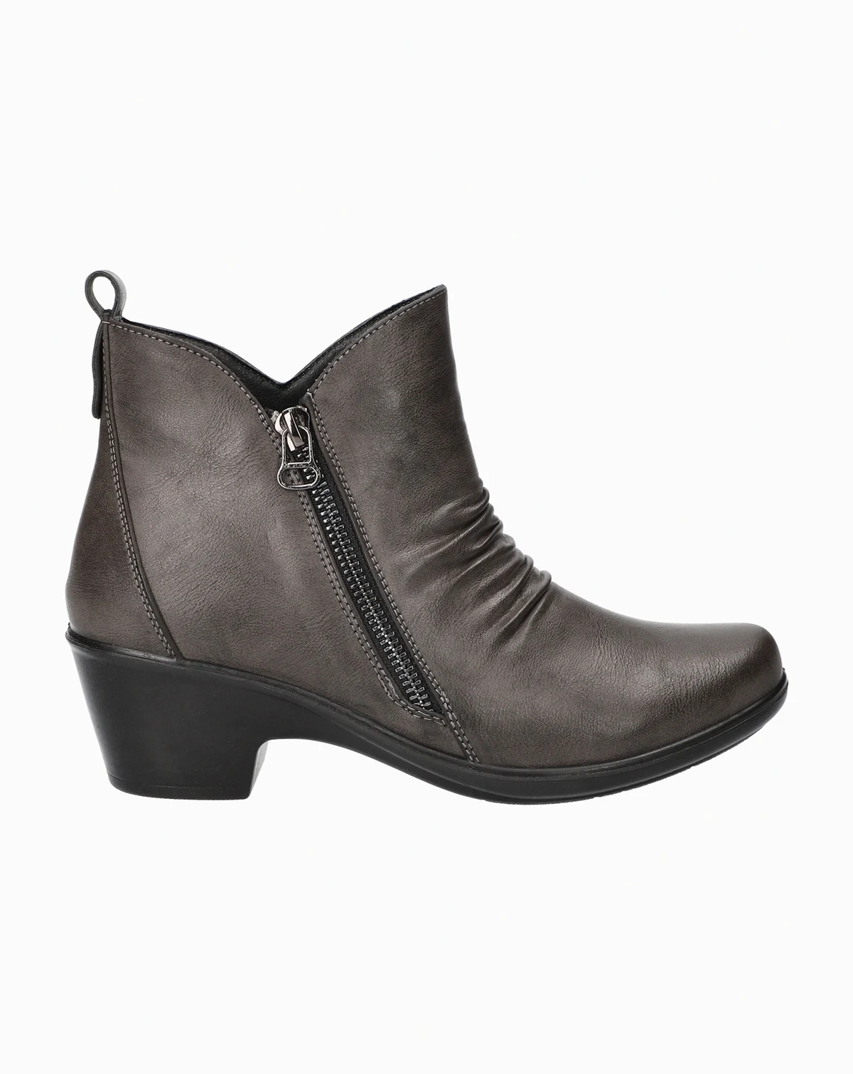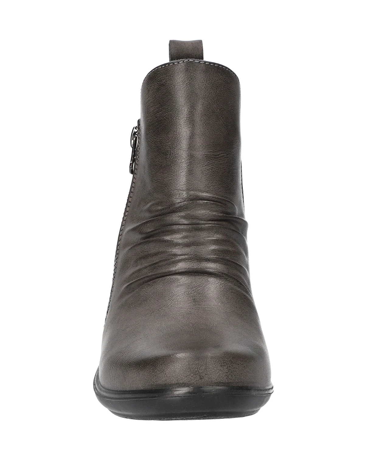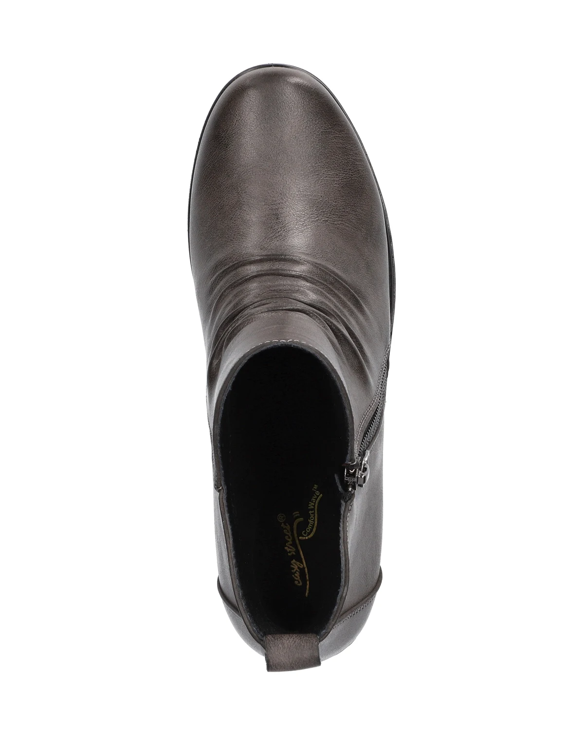 Fresh, fashionable, and ready for fall Jeanie block heel booties by Easy Street feature a pleated upper and an outside zipper for a trendy, eye-catching look. Designed with Comfort Wave construction and enhanced with an ultra-light Easy Motion removable insole, these booties are the ultimate in comfort without compromising style. Enjoy them with all your favorite fall outfits for the perfect seasonal look.