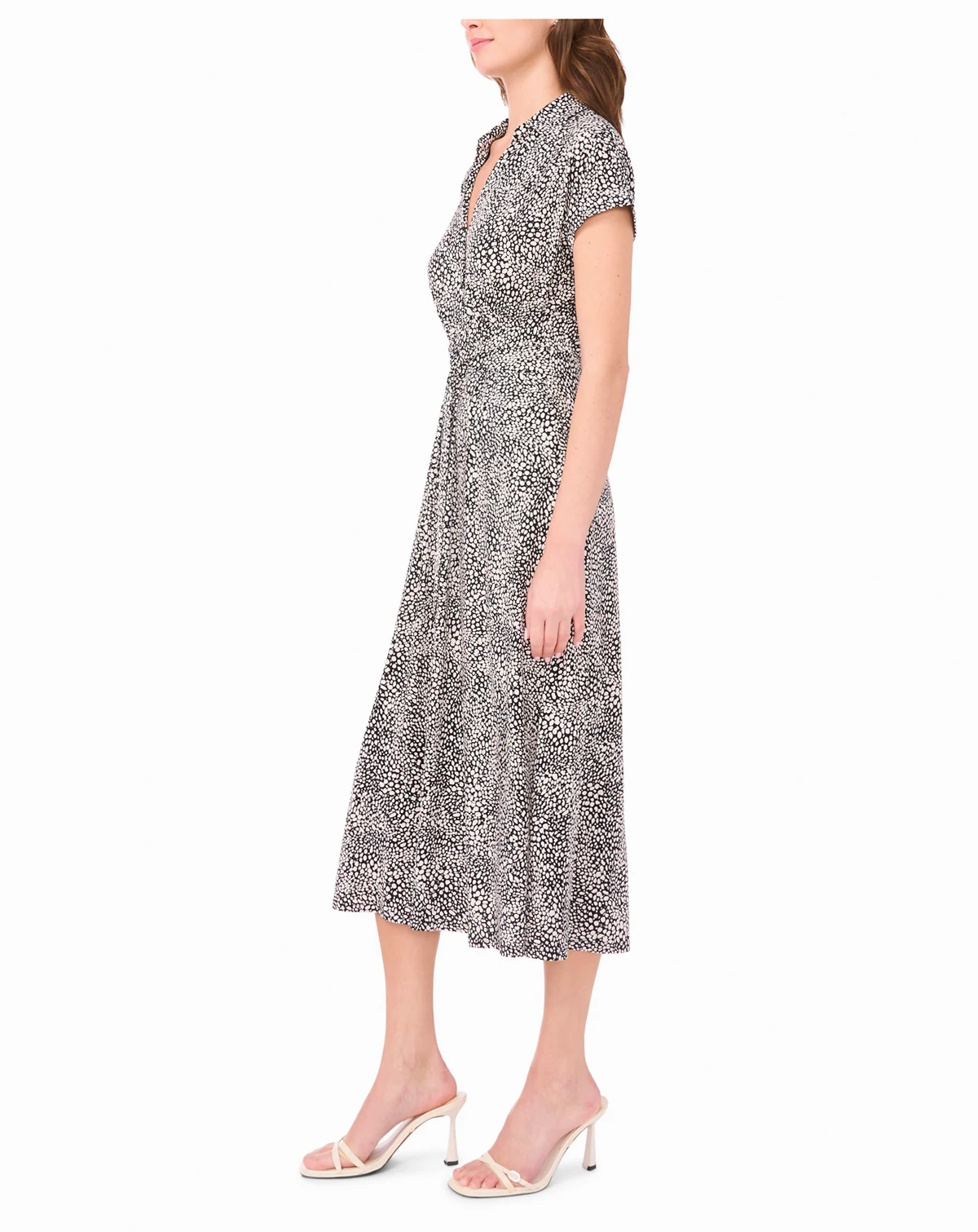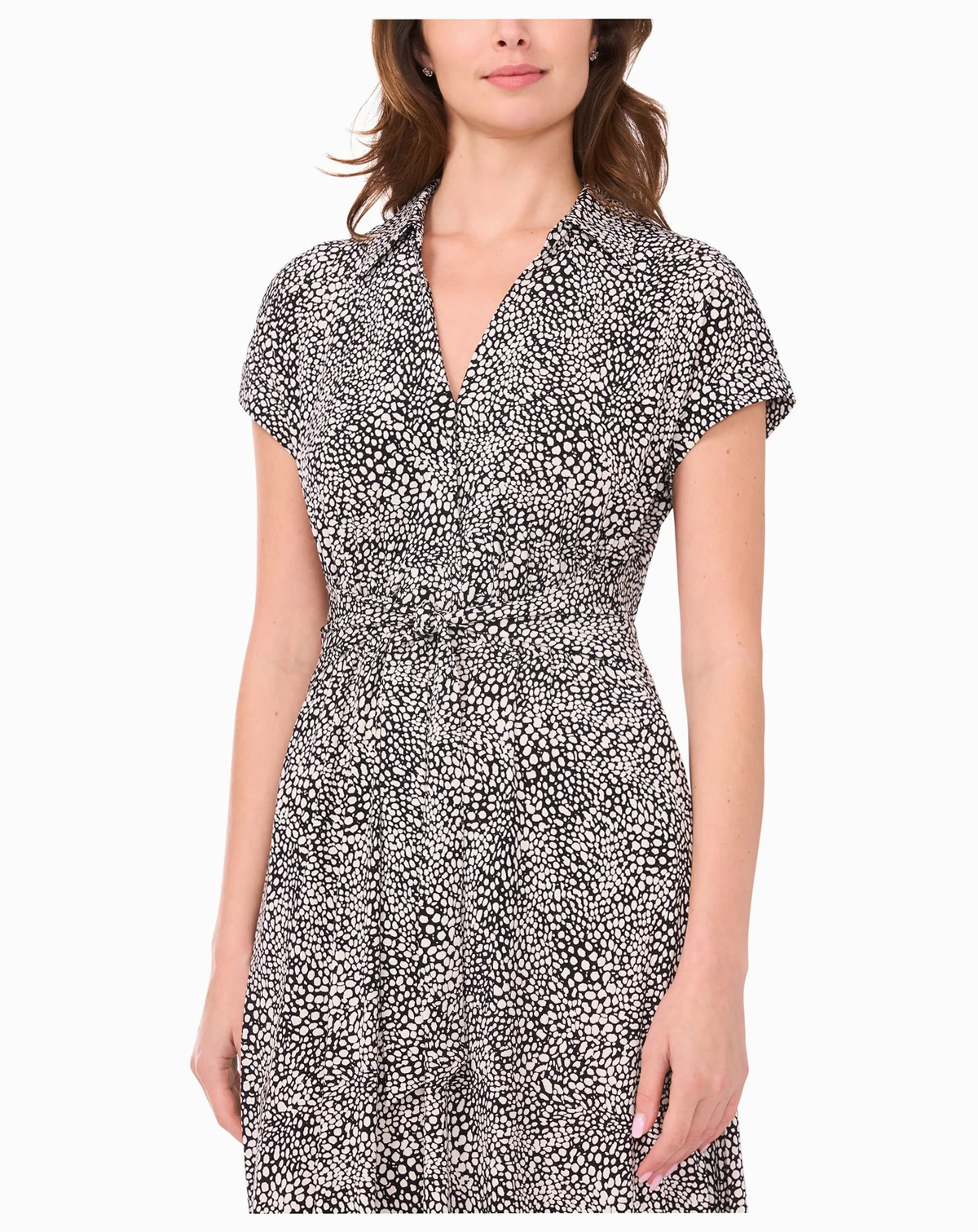 Add an artistic touch to your wardrobe with this printed belted midi shirt dress from MSK, featuring a collared neckline. The short sleeves and pull-on design make it a comfortable choice for day-long wear.