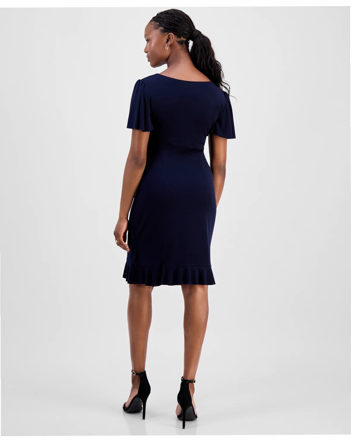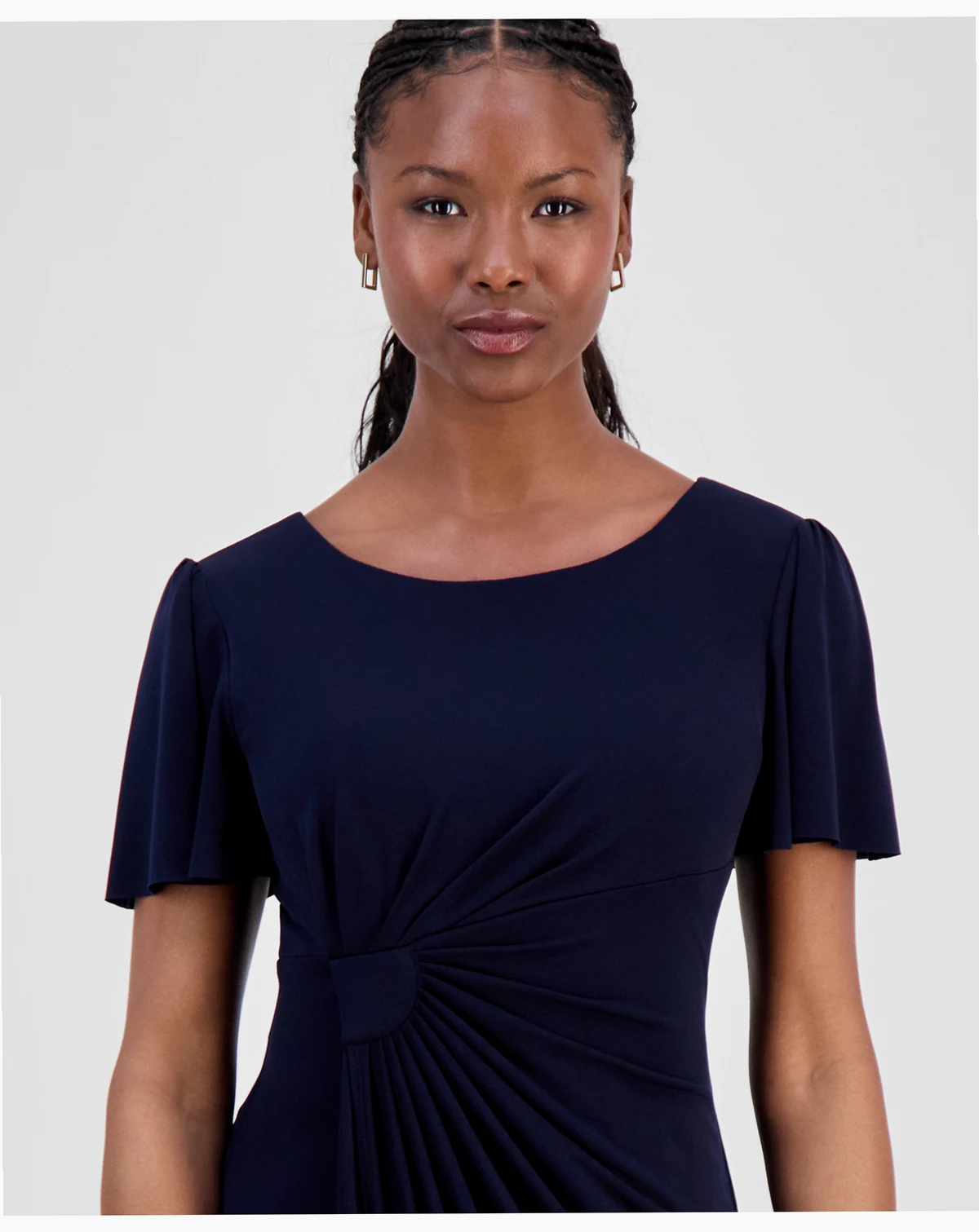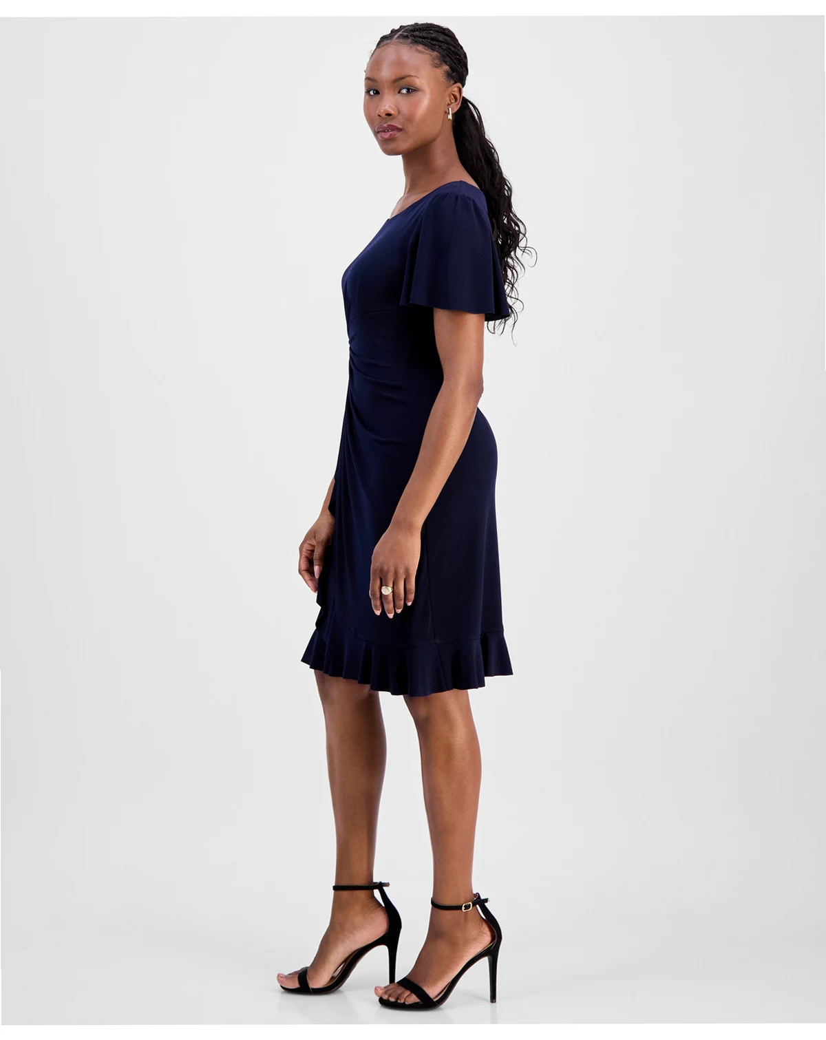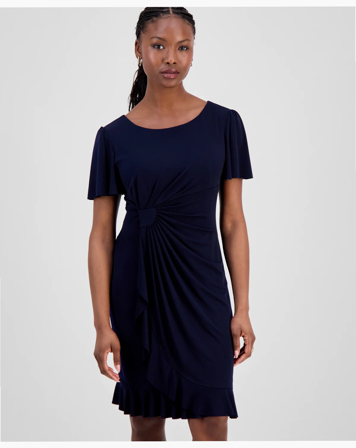 Petite Side-Gathered Flutter-Sleeve Dress