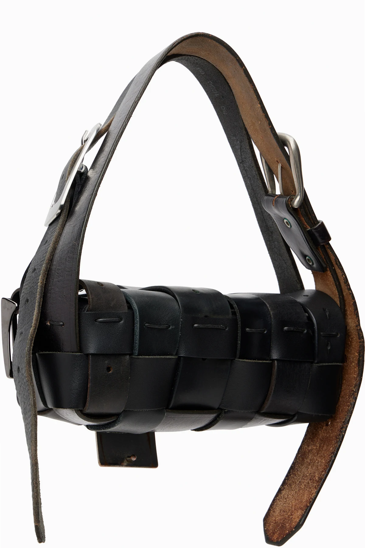 Handcrafted woven buffed leather shoulder bag.