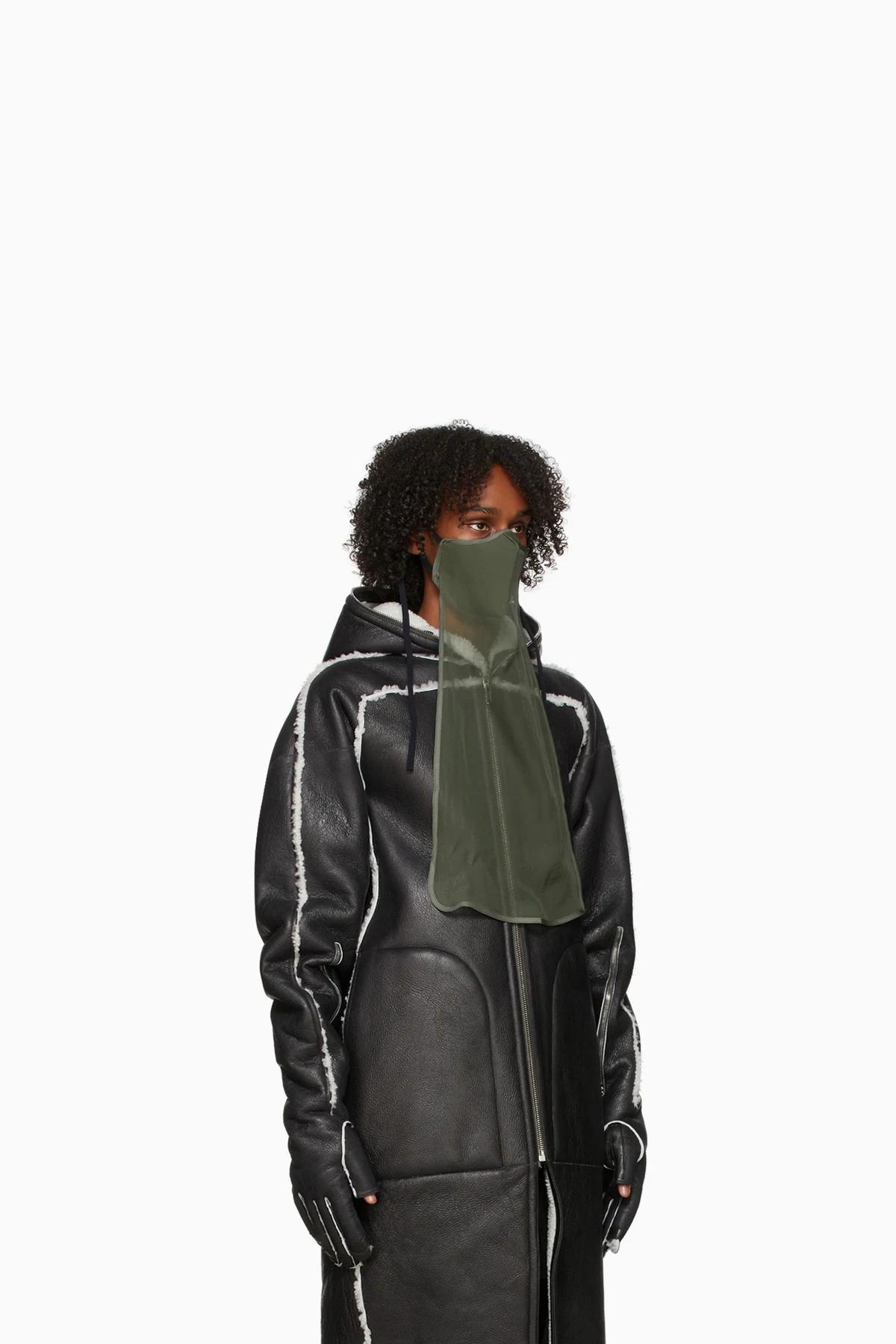 Cotton poplin mask in green featuring sheer silk overlay in green.