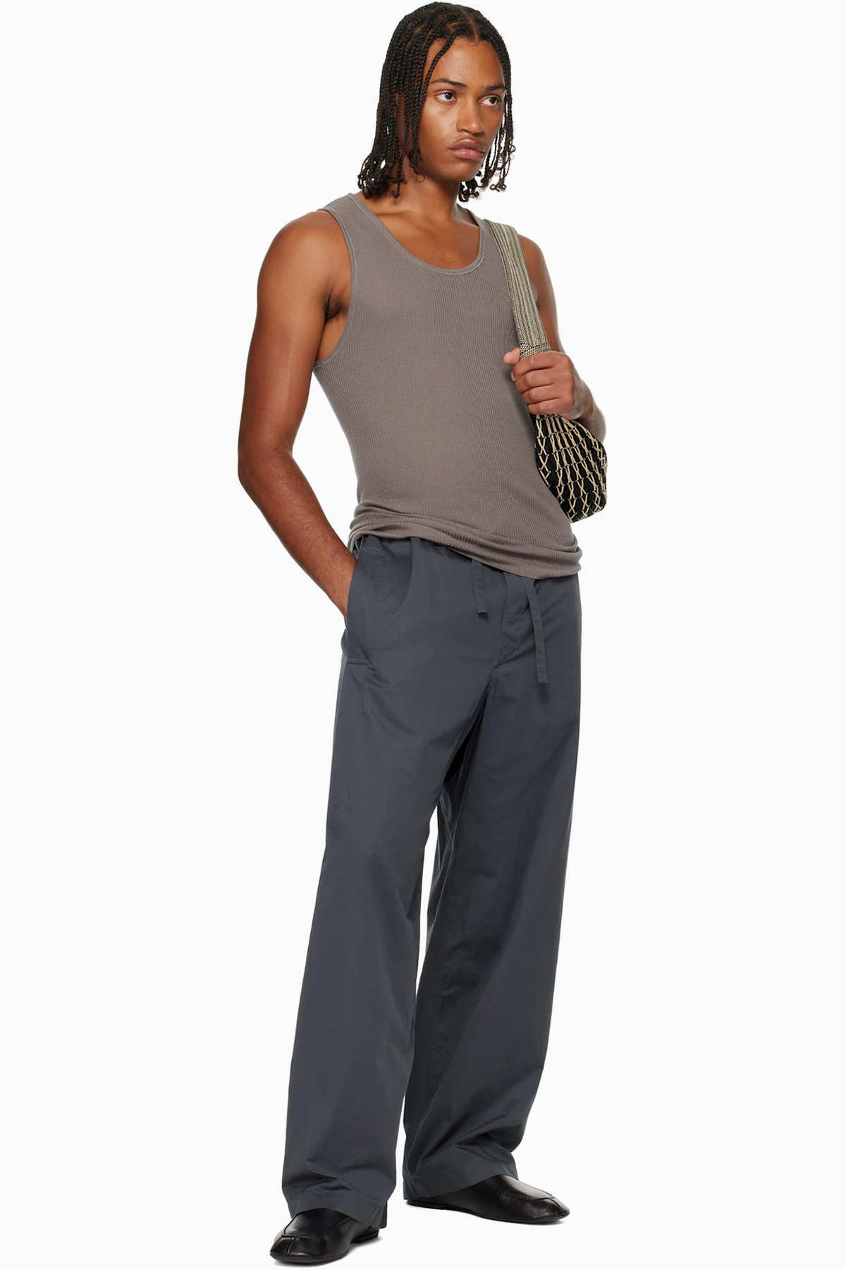 Wool ribbed jersey tank top. Rib-knit scoop neck, hem, and armscyes.