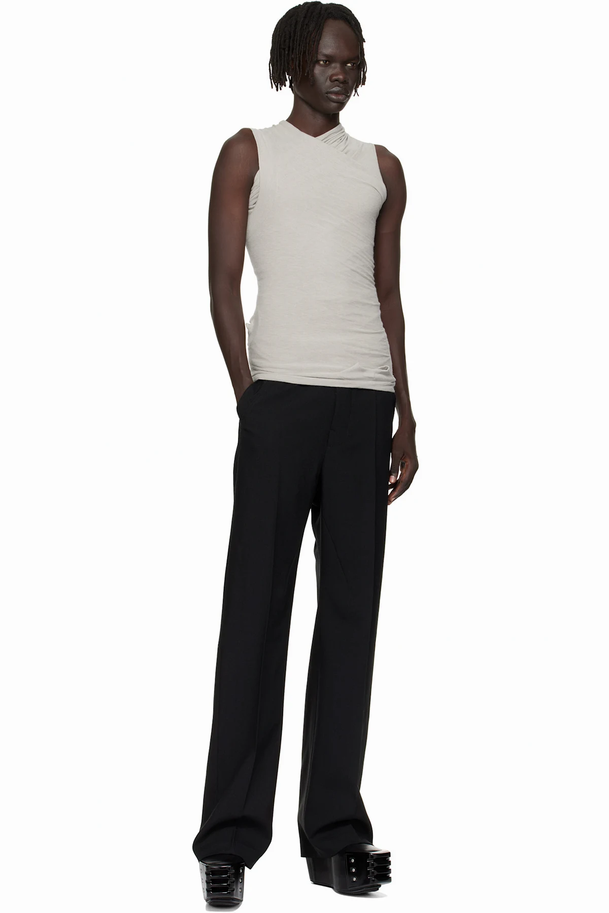 · Rib-knit cutout at front and back