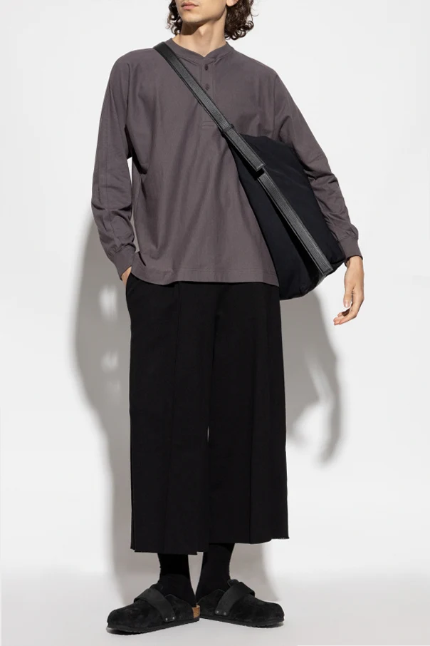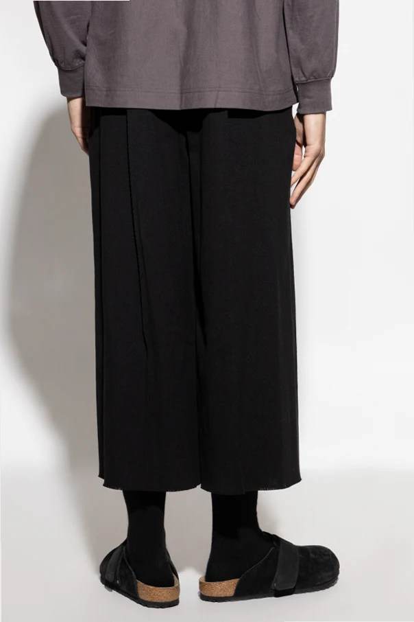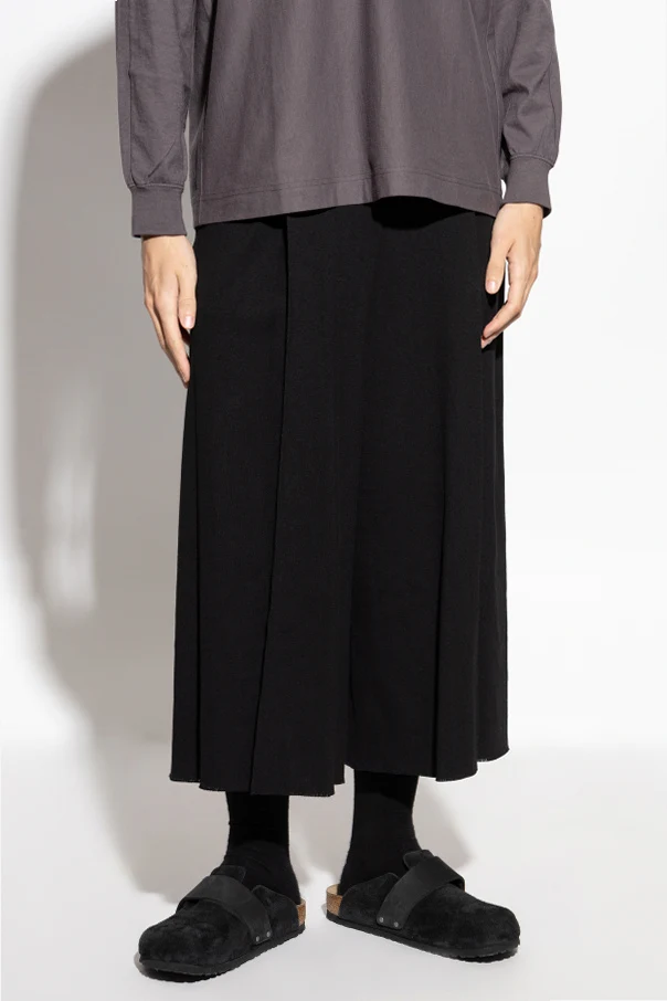 Crafted by renowned Japanese designer Issey Miyake , these Pleated Culotte Pants epitomize refined minimalism. Rendered in a soft, matte fabric blending premium cotton, resilient nylon, and a subtle touch of polyurethane, the wide-leg silhouette falls gracefully to mid-calf for effortlessly sophisticated movement. Discreet vertical pleats elongate the form, lending a statuesque elegance, while the broad elastic waistband ensures both comfort and poise. Sleek, inseam side pockets enhance practicality without disrupting the minimalist line, and the absence of external logos underscores an aesthetic of understated luxury.