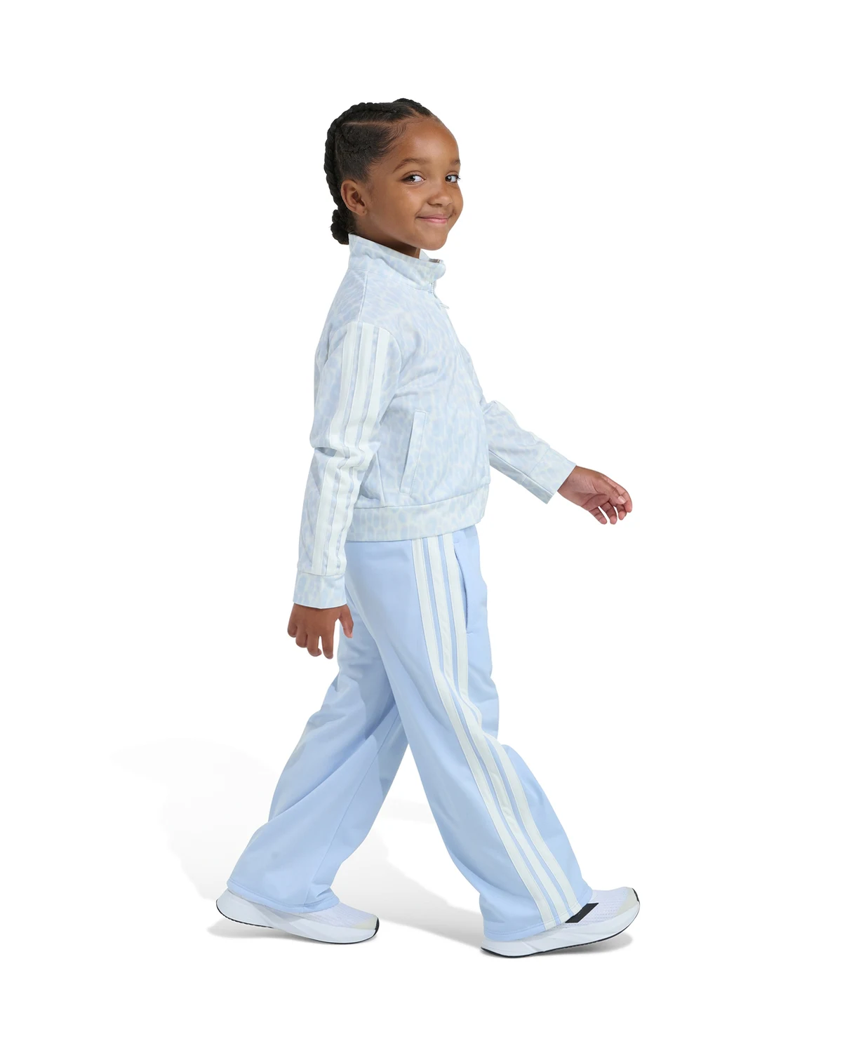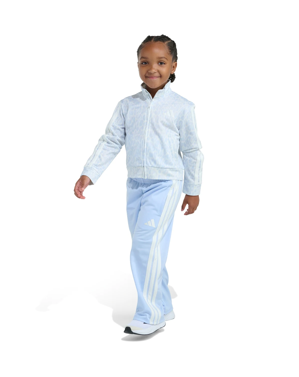 Experience effortless kids' style with this playful adidas 2-piece set, featuring a vibrant animal print jacket and matching pants. The elastic waistband on the bottoms allows for easy movement.