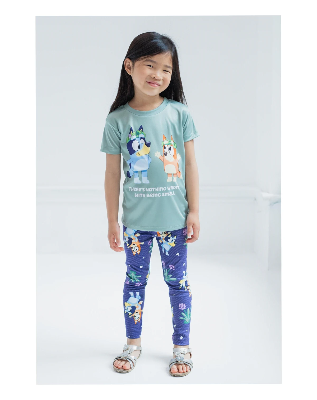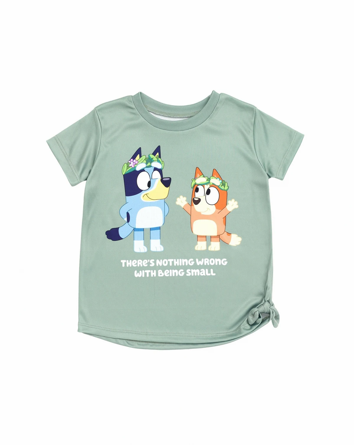 Your kid is ready to play in this adorable Bluey outfit! This comfy short sleeve shirt and leggings set features a fashionable knot-tie design and vibrant Bluey artwork your little girl will love to wear! Choose from a cute blue and green set with graphic art of Bluey and Bingo and the words "There'